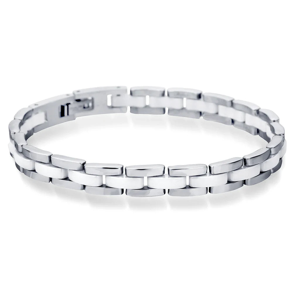 VQYSKO 20cm White Ceramic Bracelet Bangle Stainless Steel Chain Link Bracelet Women And Men Jewelry