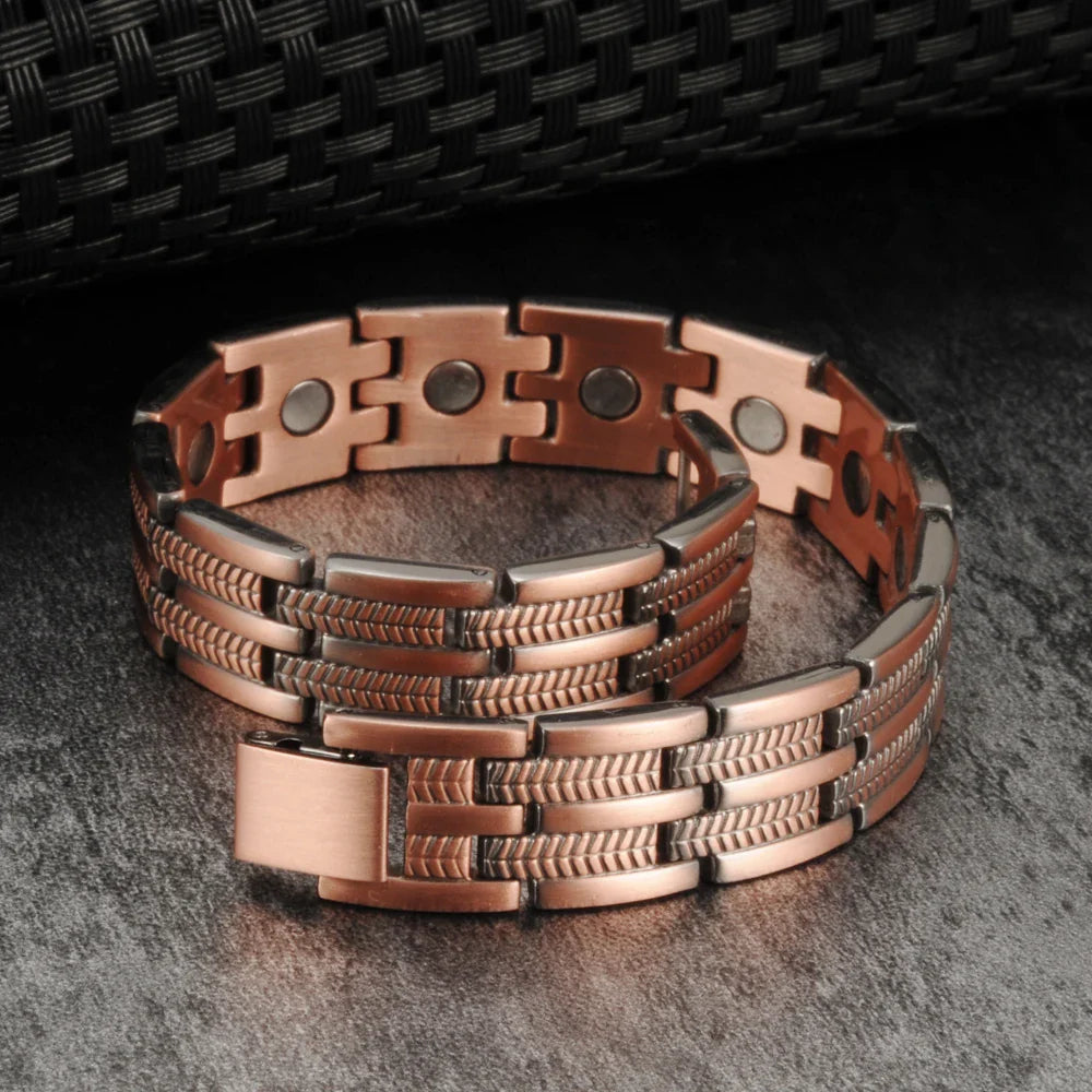 Vinterly Magnetic Pure Copper Bracelet Men Wheat Leaf 13mm Wrist Band Magnet Arthritis Pain Relief Male Energy Jewelry Male