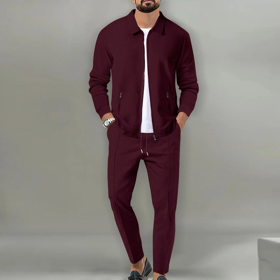 The new 2025 spring and autumn sports men's youth popular solid color jacket jacket trousers two leisure sports suit