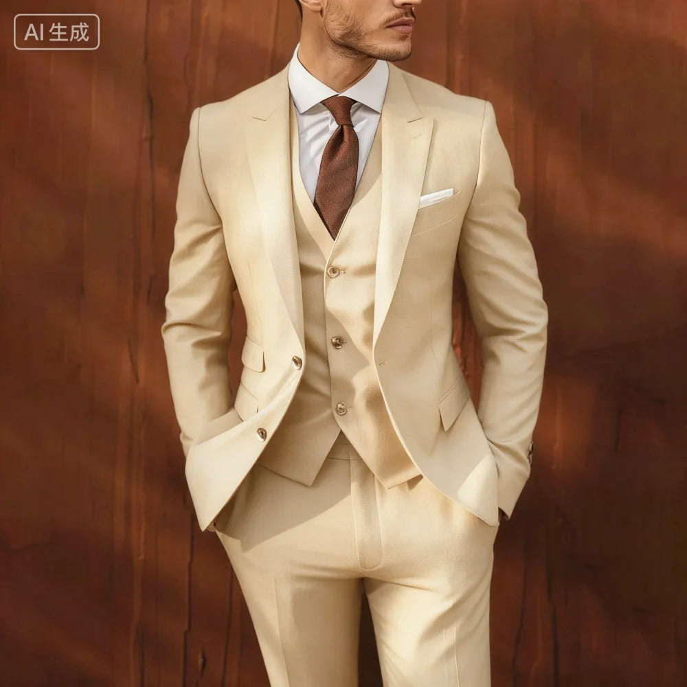 Ternos masculinos de negócios, elegante, 3 peças, único breasted, lapela repicada, smoking de casamento, festa diária, roupa mas