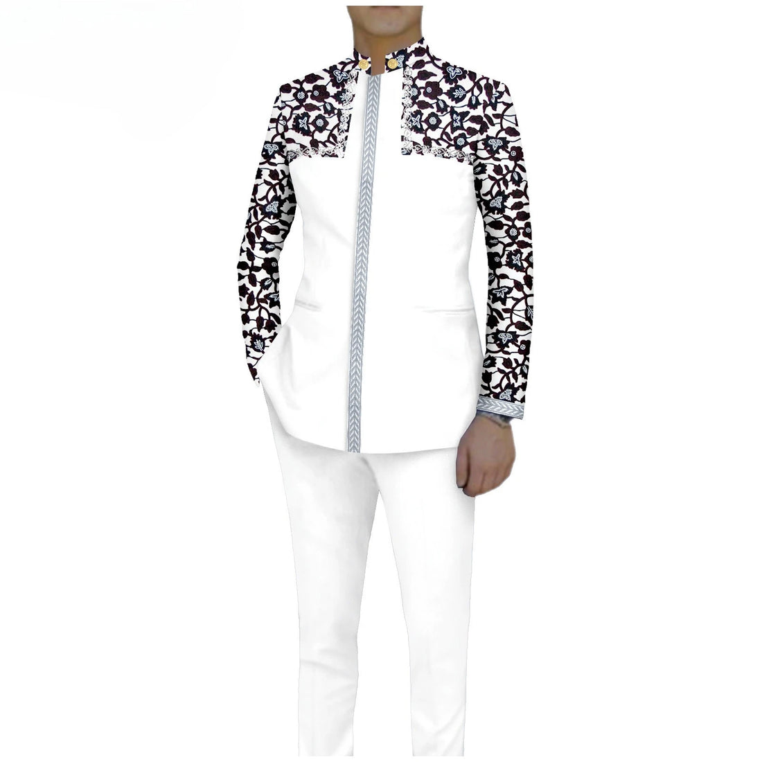 Men`s Suit Slim Fit Embroidery Gold Chain Single Breasted Blazer and Trousers 2 Piece Set Print Outfits African Clothes A2416106