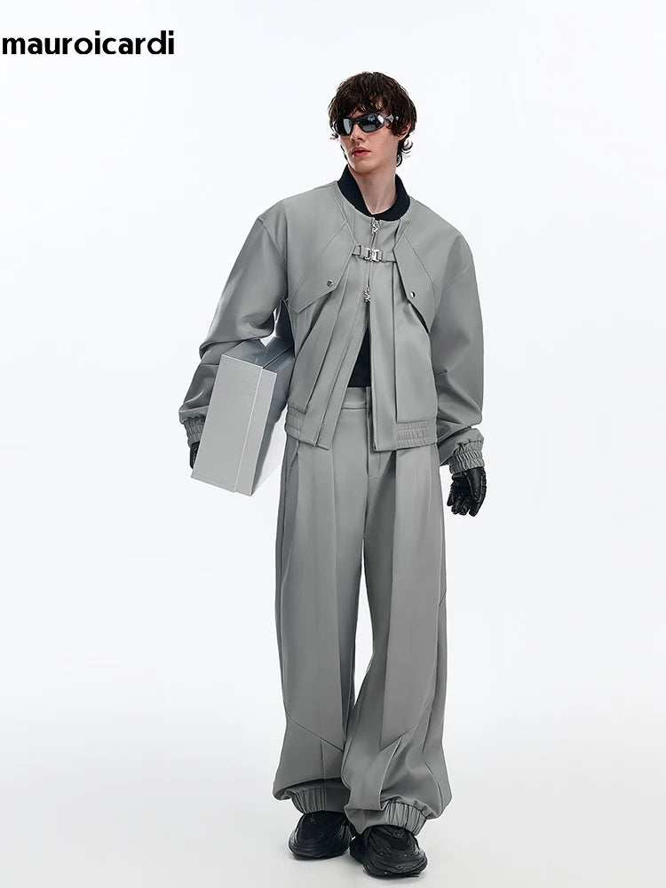 Mauroicardi Spring Autumn Cool Handsome Pu Leather Bomerb Jacket Men Zipper Runway European Fashion Luxury Designer Clothes 2025