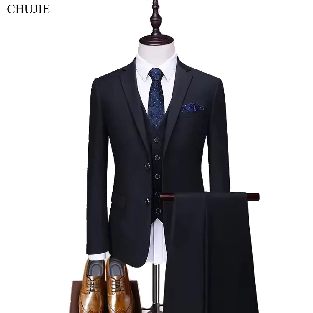 High Quality Men Suits Elegant For Wedding 3 Pieces Blazers 2 Sets Business Jackets Vest Pants Formal Full Classic Coats