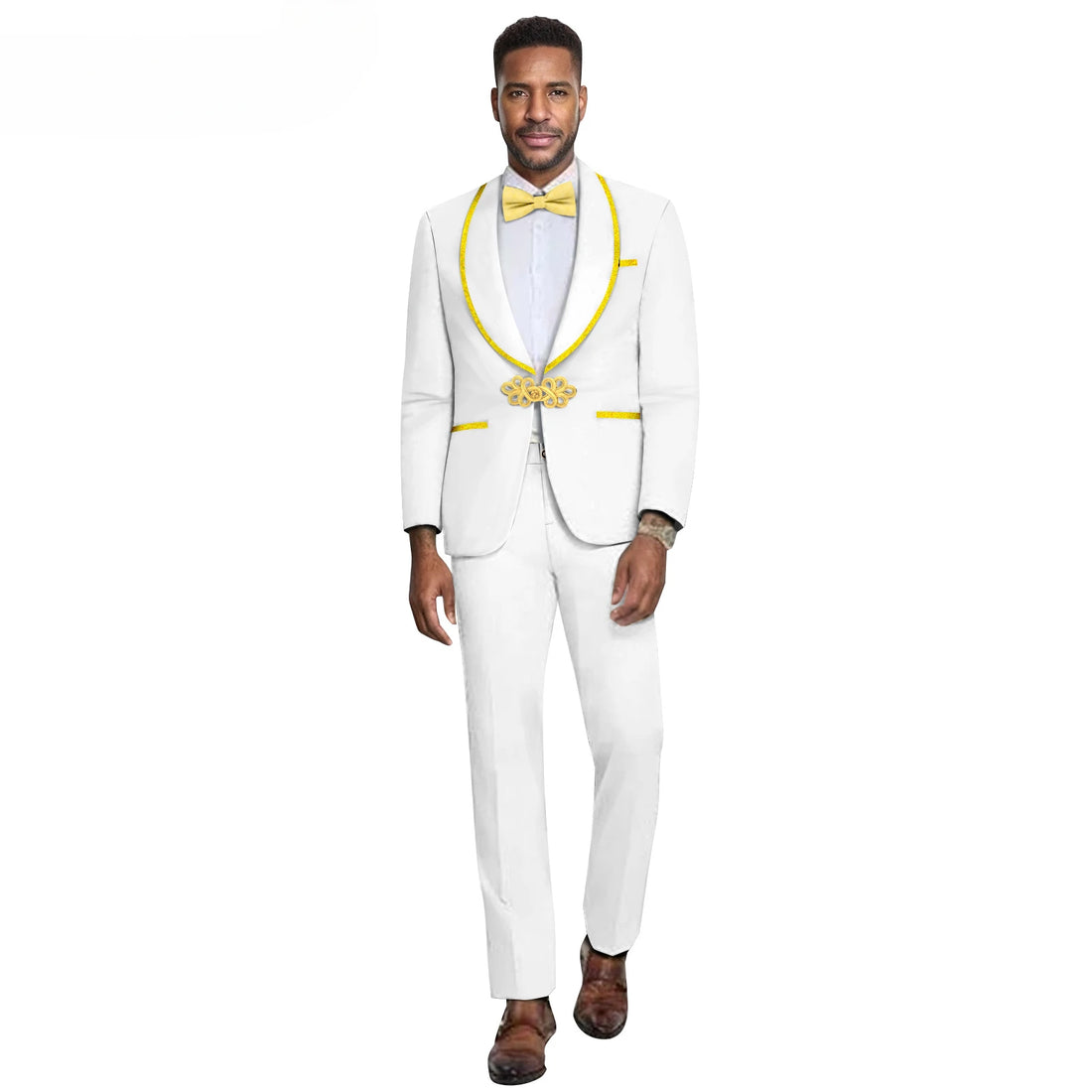 2025 White Luxury Suits for Men Slim Fit Prom Party Wedding Groomsmen Groom Suit Tuxedo 2Pcs Fashion Costume Homme Blazer Pants