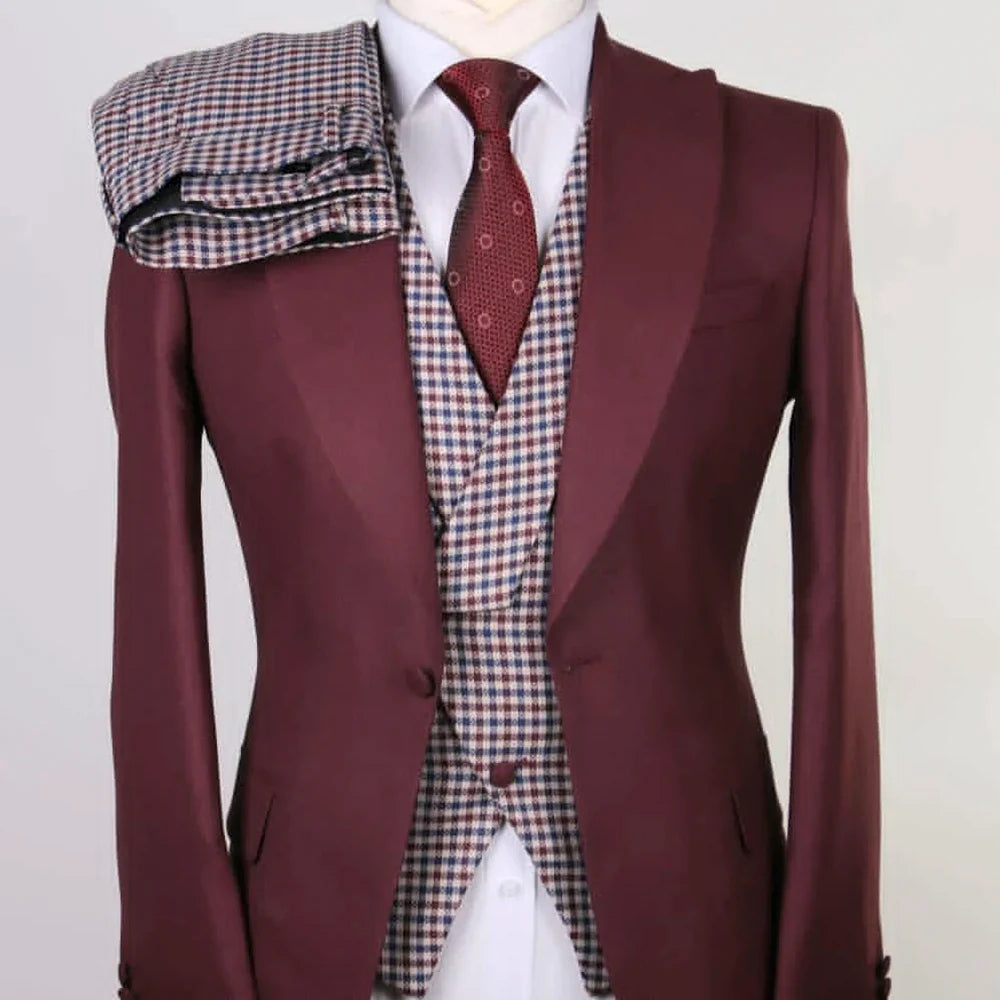 SILIWEYA Customzied Slim Fit Men's Suits Elegant One-Button Peak Lapel Skinny 3 Piece Jacket Pants Vest Party Full Sets Costume