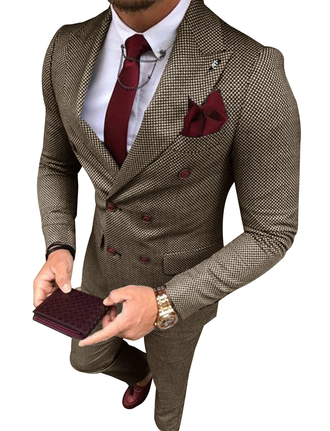 Men's Tweed Suit Plaid Double Breasted Jacket and Pants Groom Business Tuxedos men suits wedding prom suits