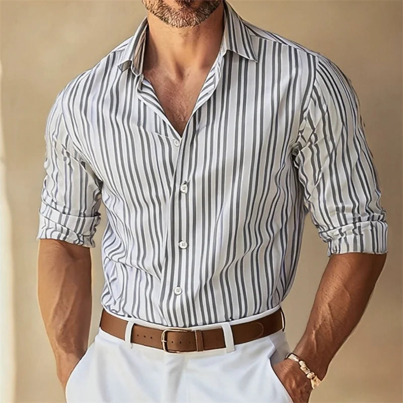 10 colors men's formal lapel button-down striped collar long-sleeved shirt black blue large size slim fit business wear