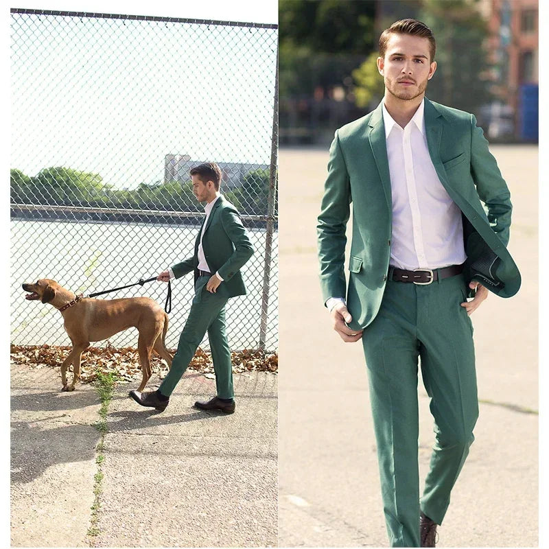 2 Piece 2024 Latest Design Green Fashion Men Suits Casual Slim Fit Notch Lapel Blazers Hombre High Quality Custom Set Costume