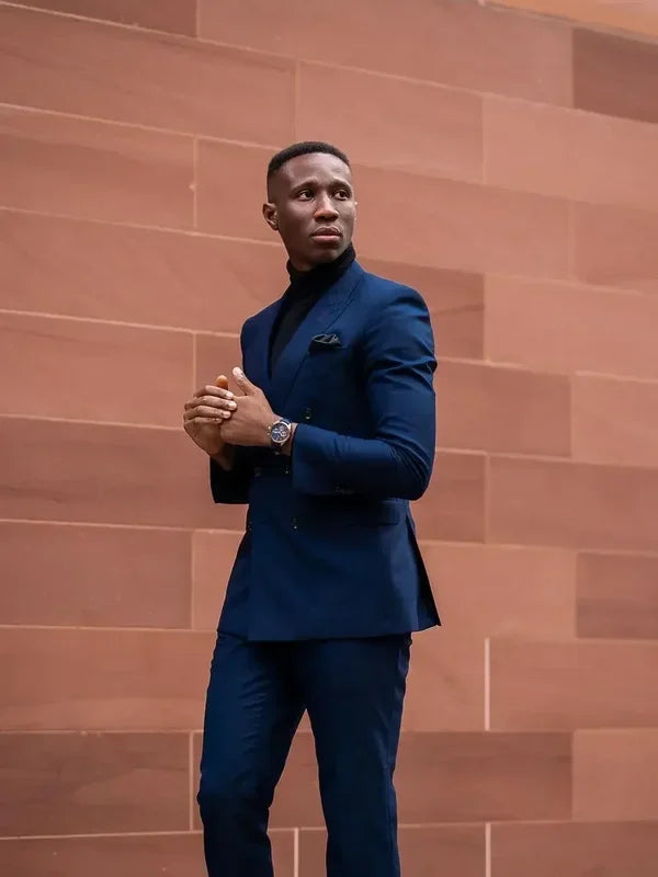 2 PieceFashion Blue Smart Casual Men Suit Double Breasted Slim Fit Blazer Hombre Business High Quality Custom Set Costume Homme