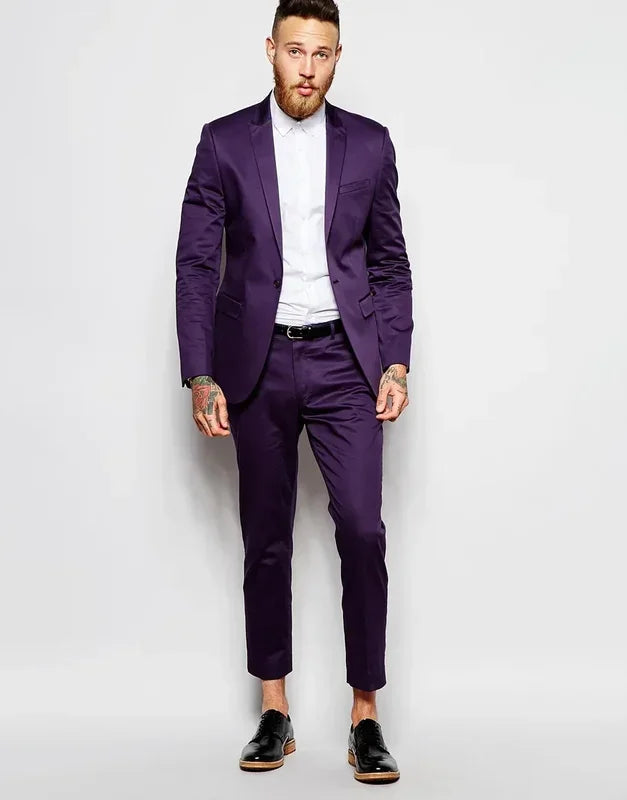 2 PiecePurple Satin Wedding Suit For Men High Quality Jacket Slim Fit Stage Tuxedo Style Suits Custom Prom Blazer Costume Homme