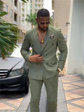 2 Pieces New Fashion Green Double Breasted Men Suits Wedding Slim Fit Tuxedo Terno Masculino Prom Groom Blazer Custom Made