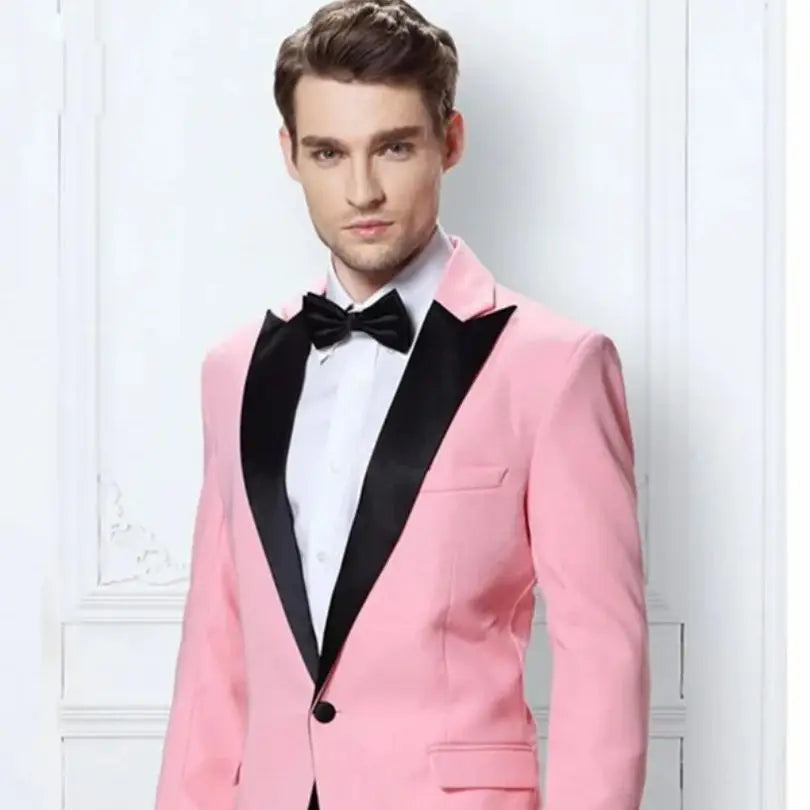 2 Pieces Pink Men's Peak Lapel One Button Blazer Slim Fit Suits Groom Tuxedos Jacket and Trousers Casual Business Men Suits