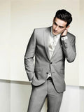 2 PiecesNew Light Gray Men's Suit Single Breasted Peak Lapel Jacket Slim Fit Casual Tuxedos For Wedding/Business (Blazer+Pants)