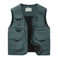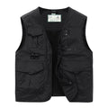 2024 Men Spring Sleeveless Many Pocket Stand Collar Vest Jackets Men Solid Color Outdoors Fishing Cargo Casual Vest Jackets Male