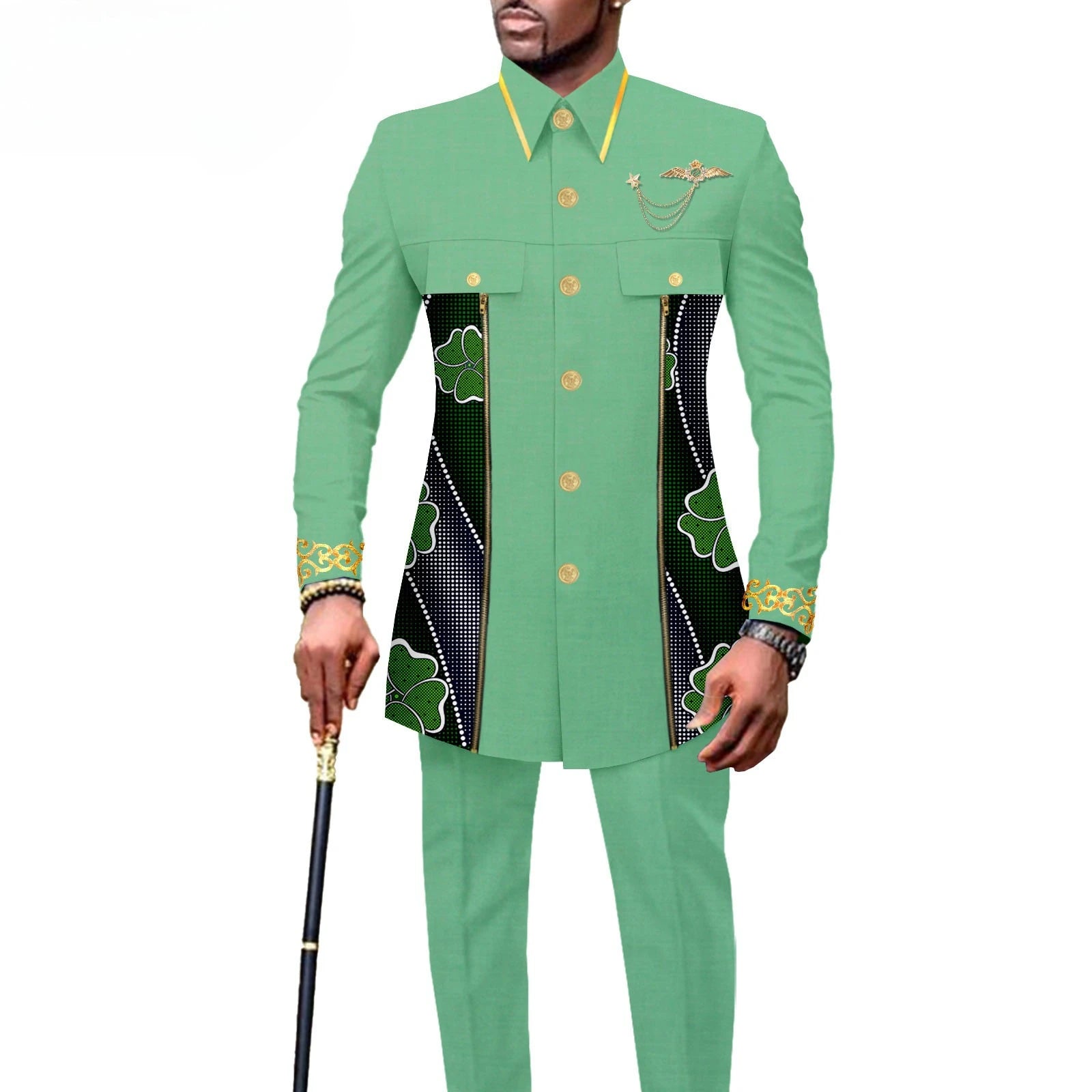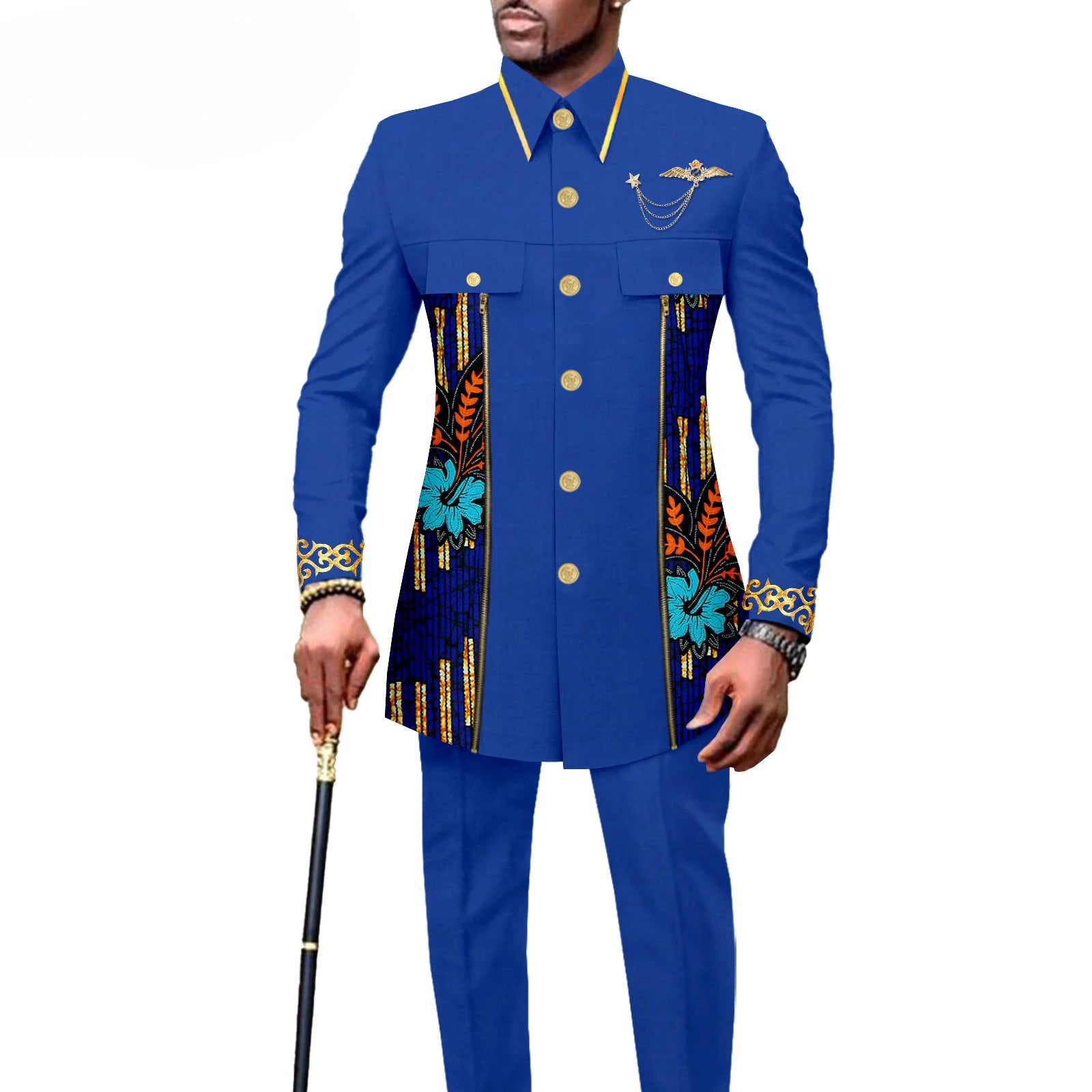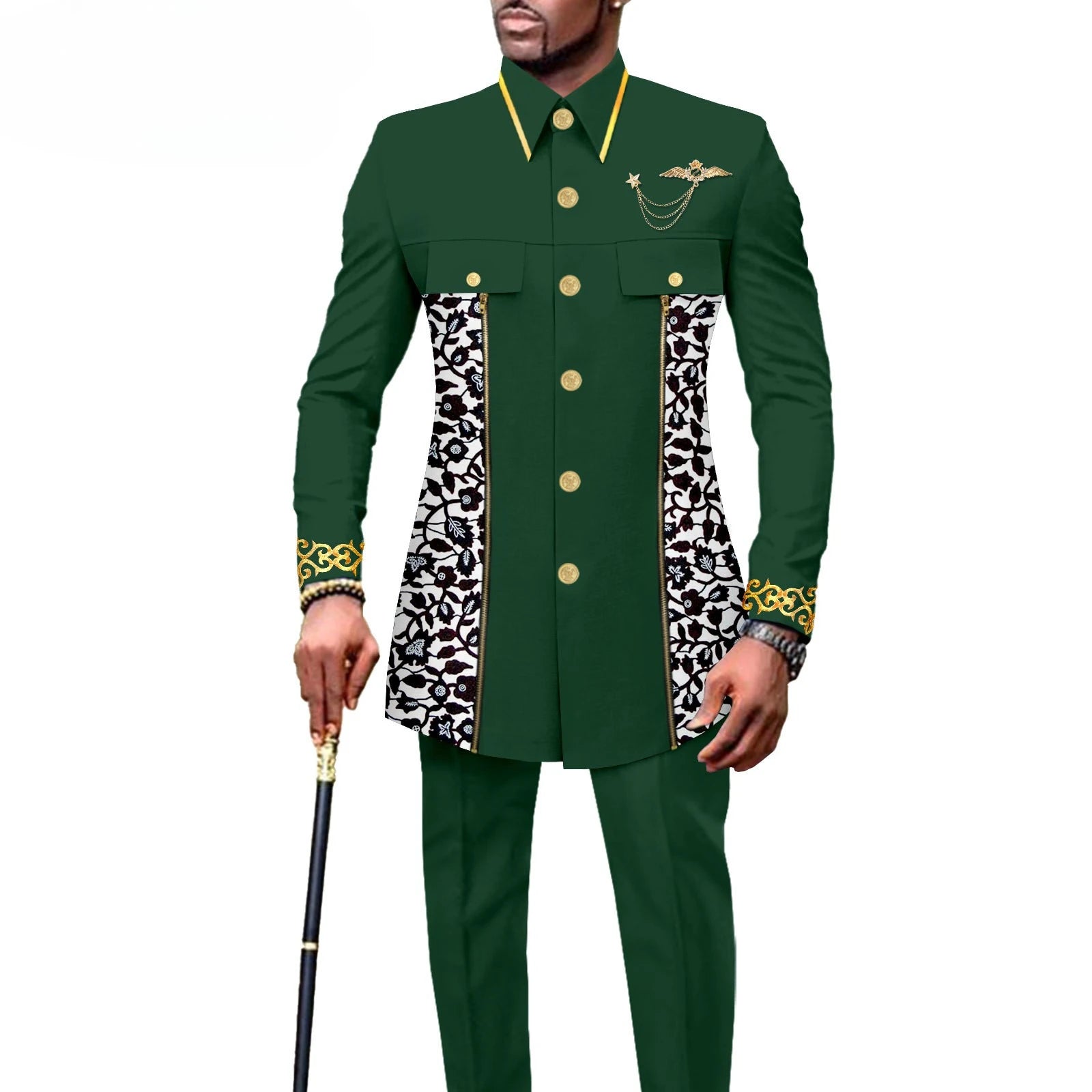 2025 African Ethnic Solid-color All-cotton Men's Casual Set with Embroidered Top and Trousers A2416079 Clothes for Men