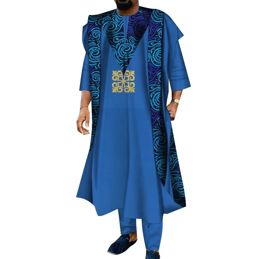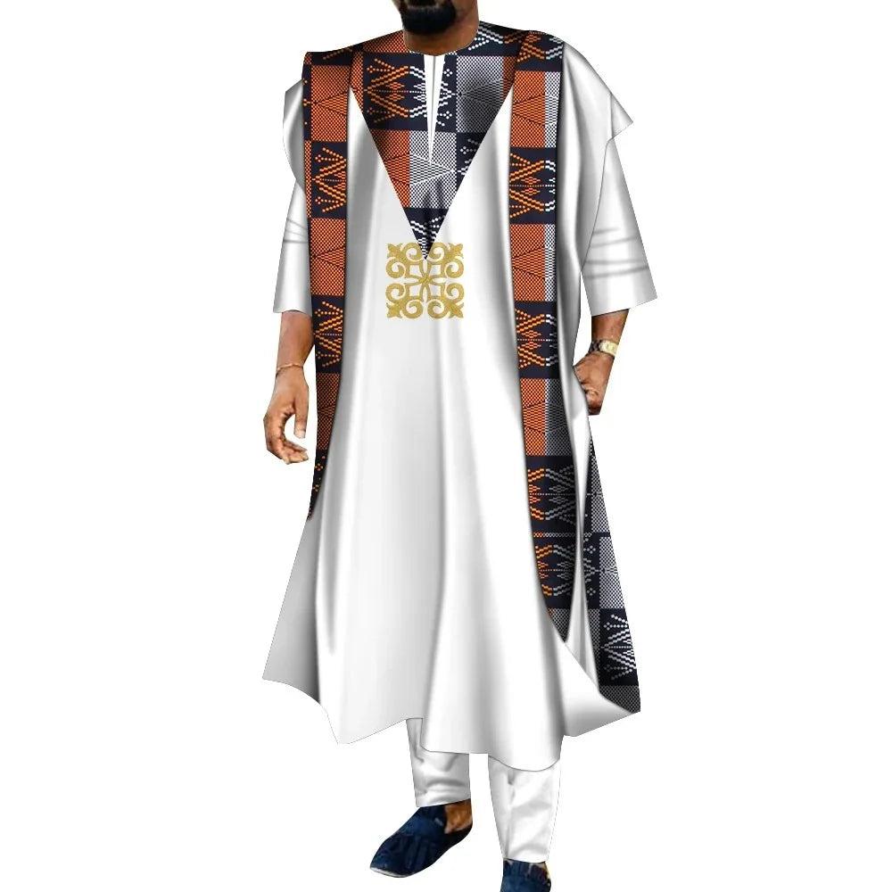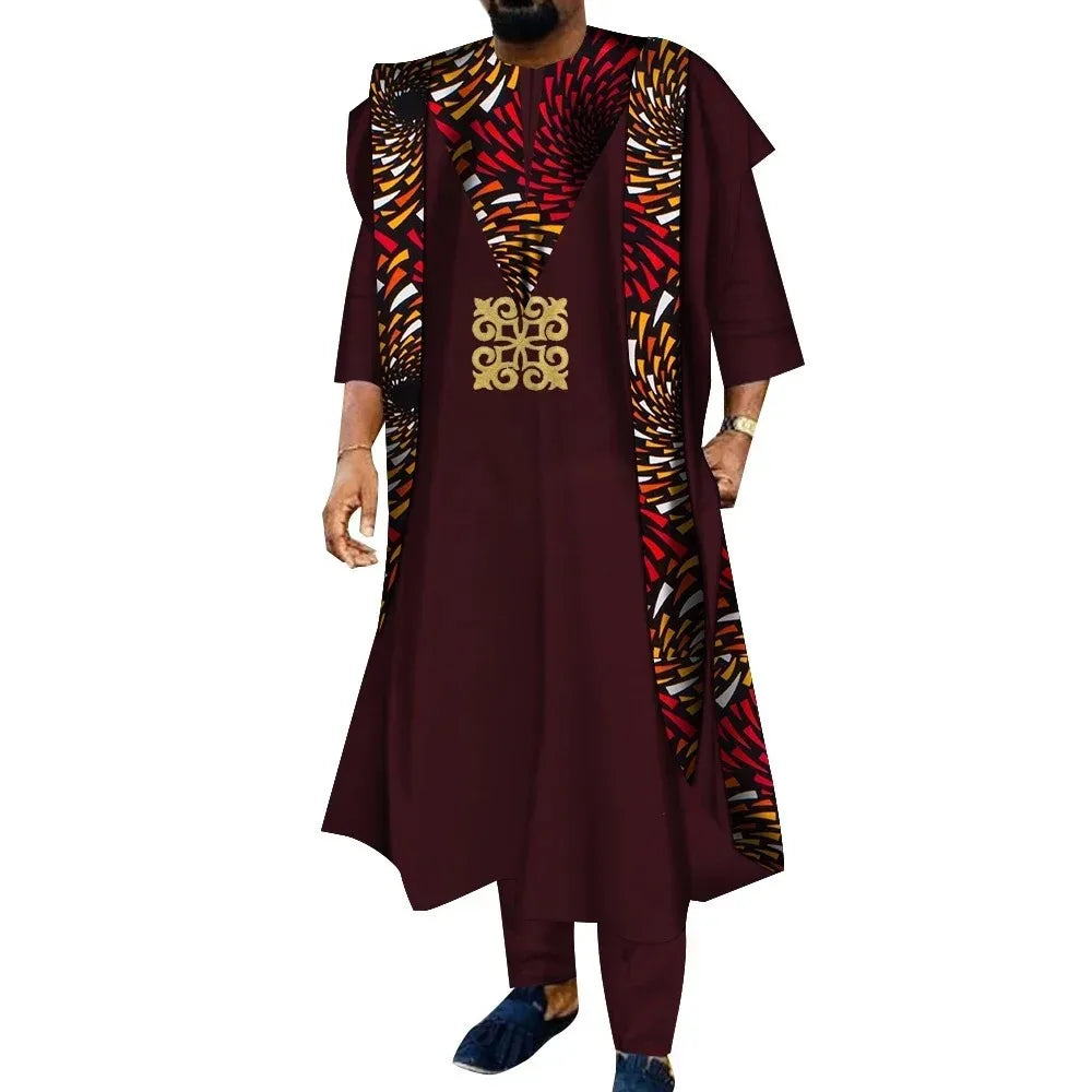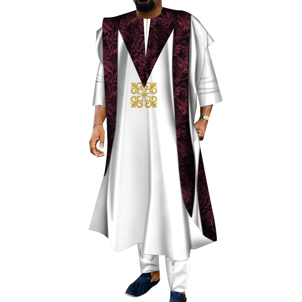 2025 African Men's Robe Set, Shirt, Ankara 3-piece Wedding Dress, Long Robe Set, Traditional Clothing Mens Clothes
