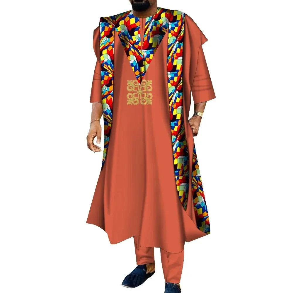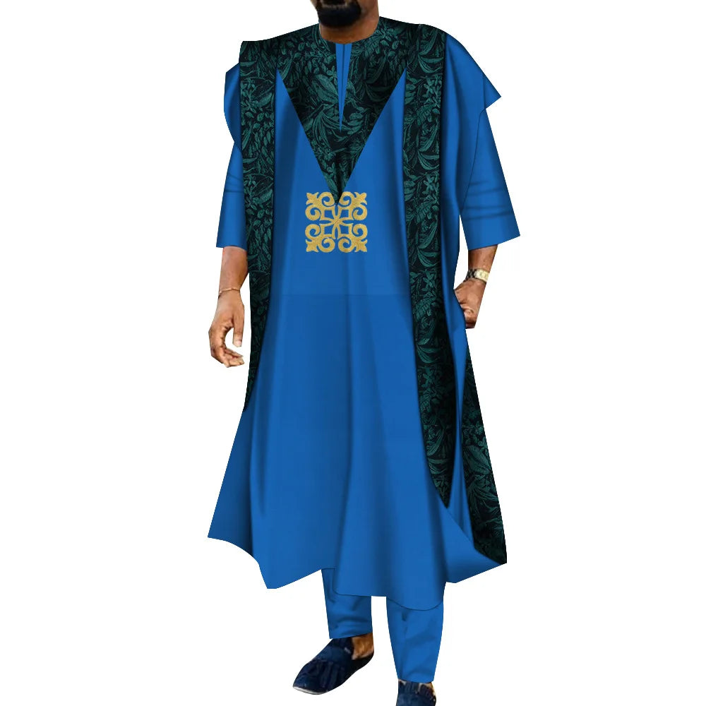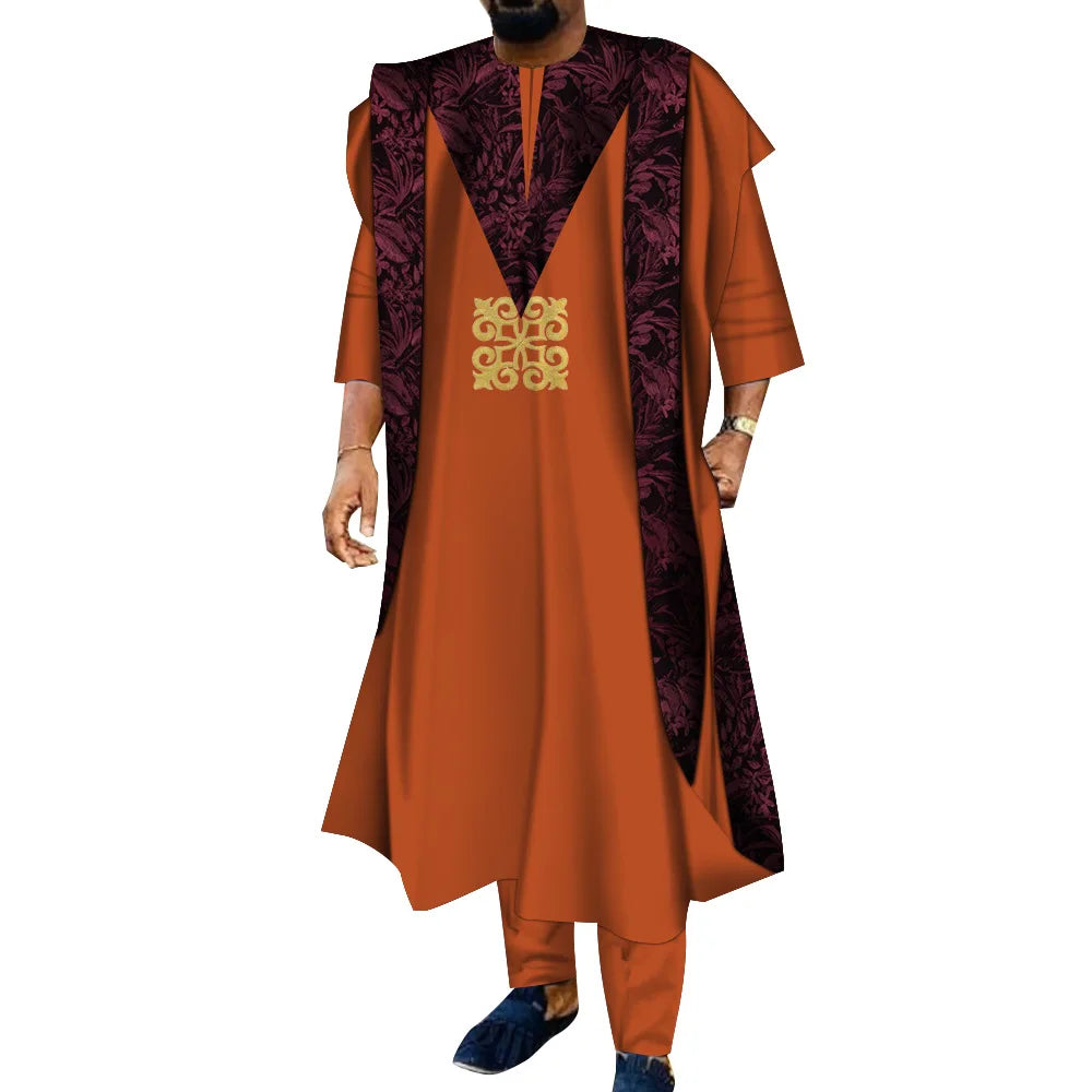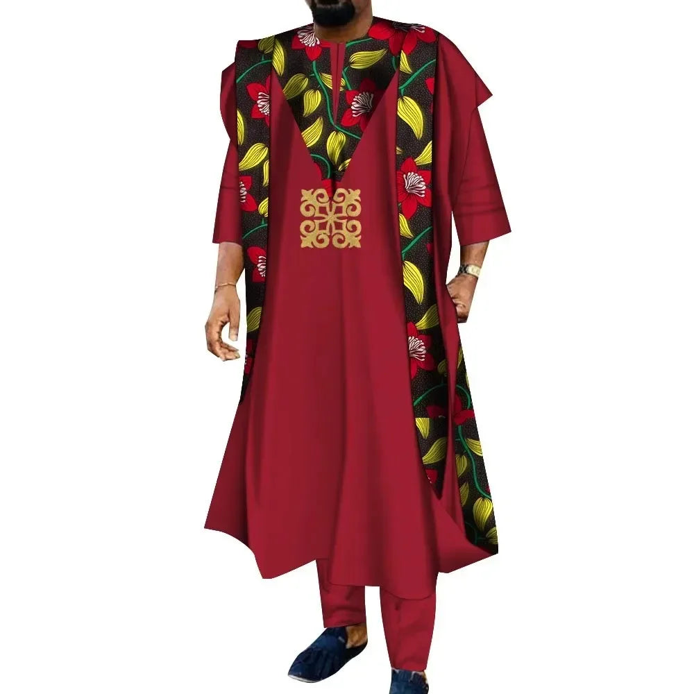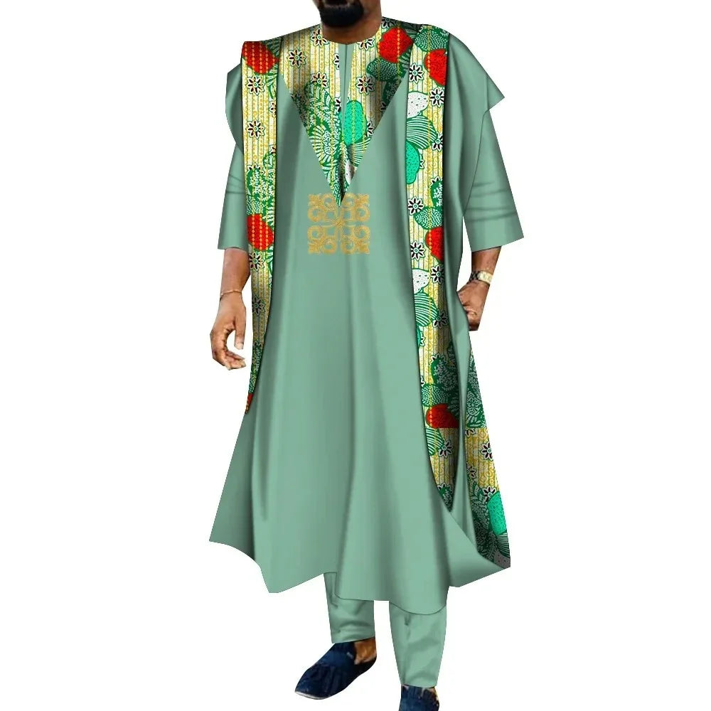 2025 African Men's Robe Set, Shirt, Ankara 3-piece Wedding Dress, Long Robe Set, Traditional Clothing Mens Clothes
