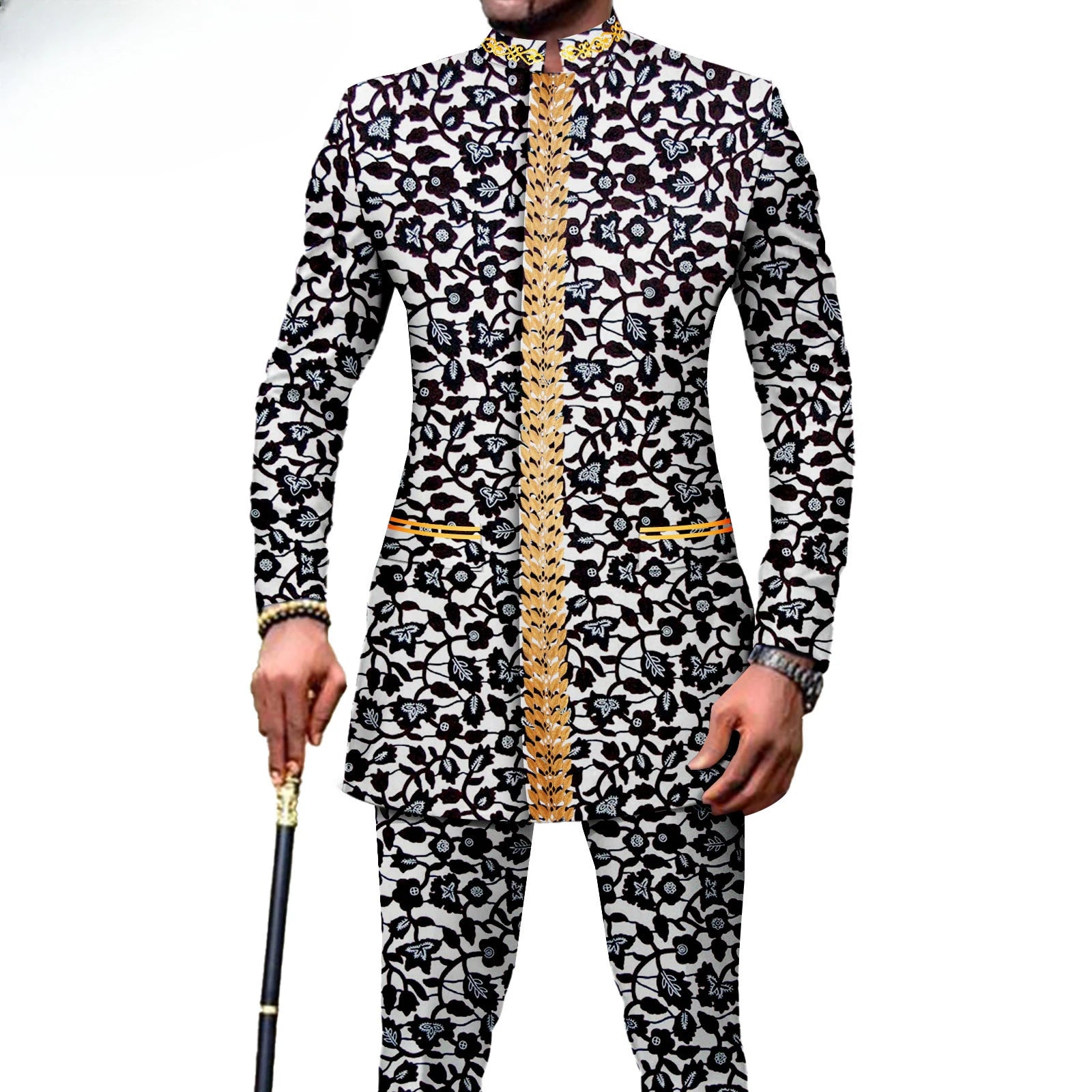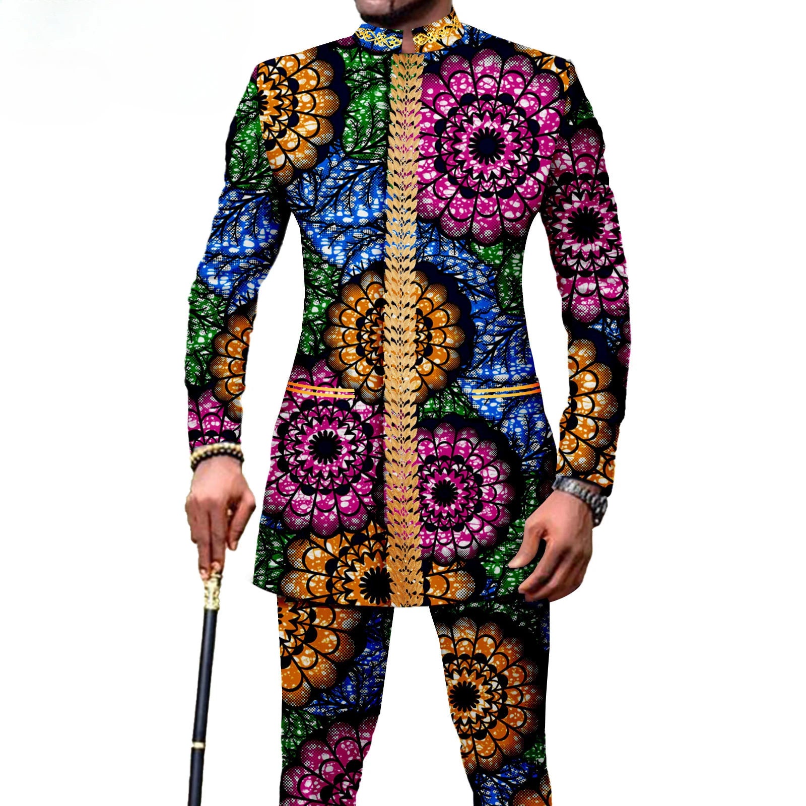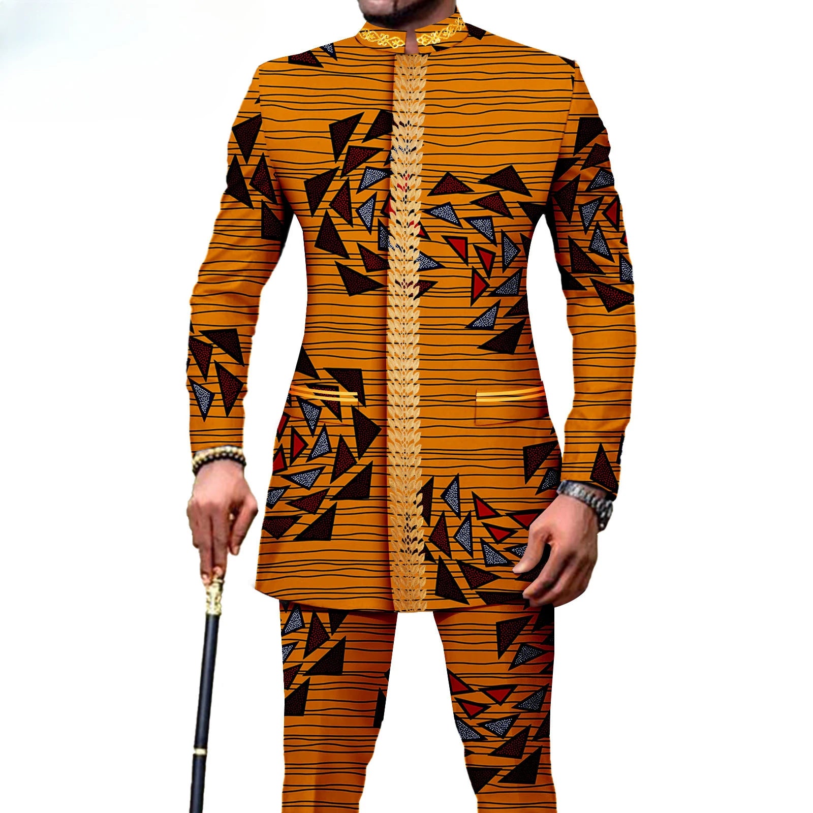 2025 Dashiki for Men African Suit Embroidery Jackets and Pants 2 Piece Set Traditional Attire Dashiki Clothes Print Outfits