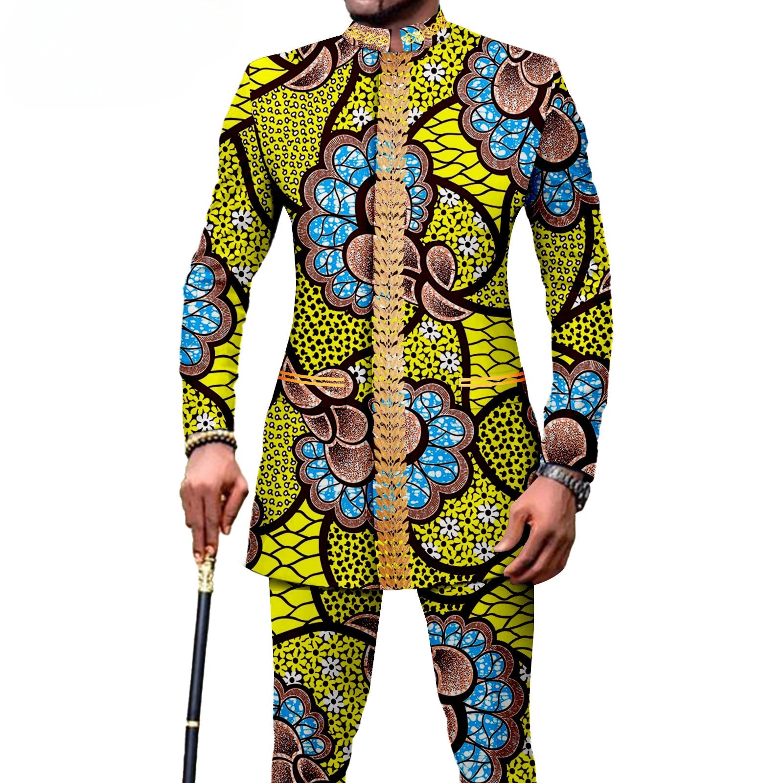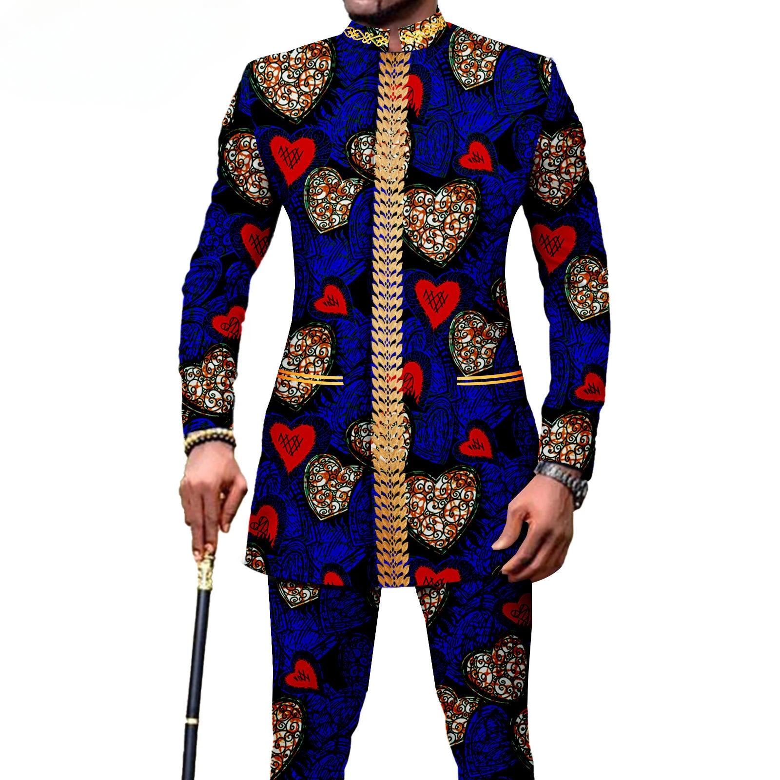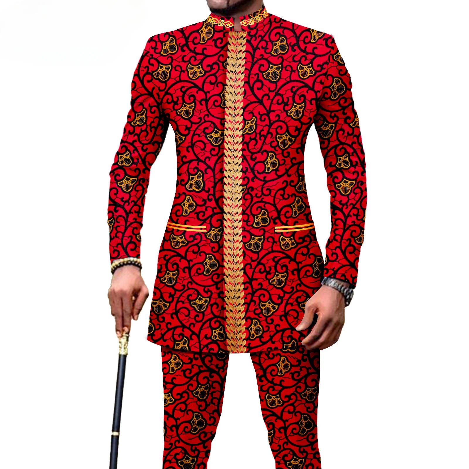 2025 Dashiki for Men African Suit Embroidery Jackets and Pants 2 Piece Set Traditional Attire Dashiki Clothes Print Outfits
