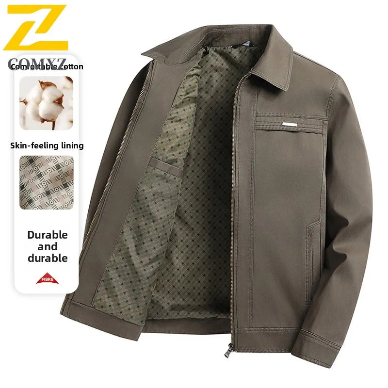 2025 High-end Men's Jacket Fashion Casual Cotton Comfortable Breathable Lapel Windproof Jackets Autumn Business Solid Color Coat
