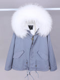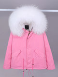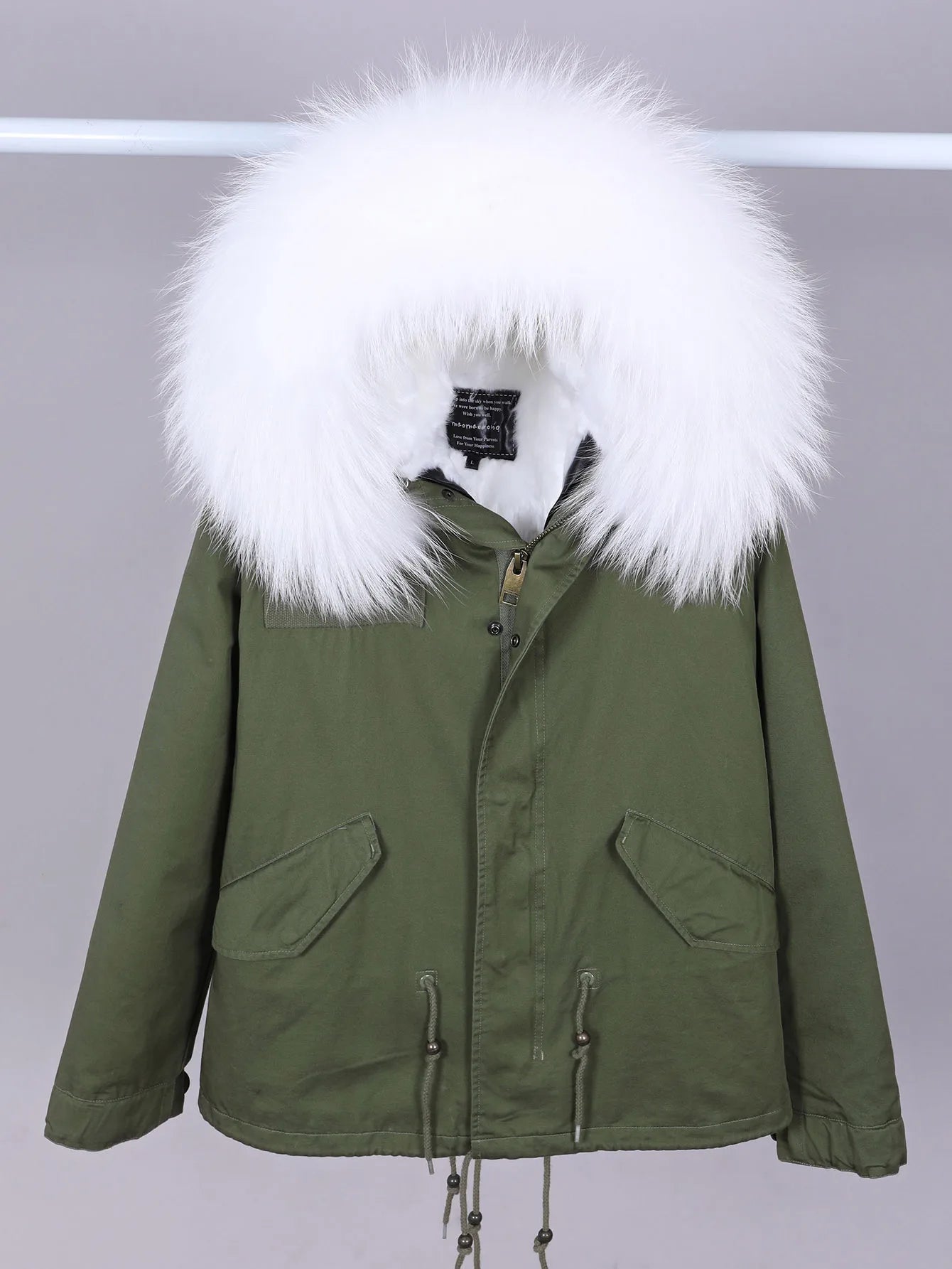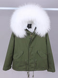 2025 MAOMAOKONG New Natural White Raccoon Big Fur Collar Women's Winter Real Fur Collar Coat Female Short Parka Bomber Jacket