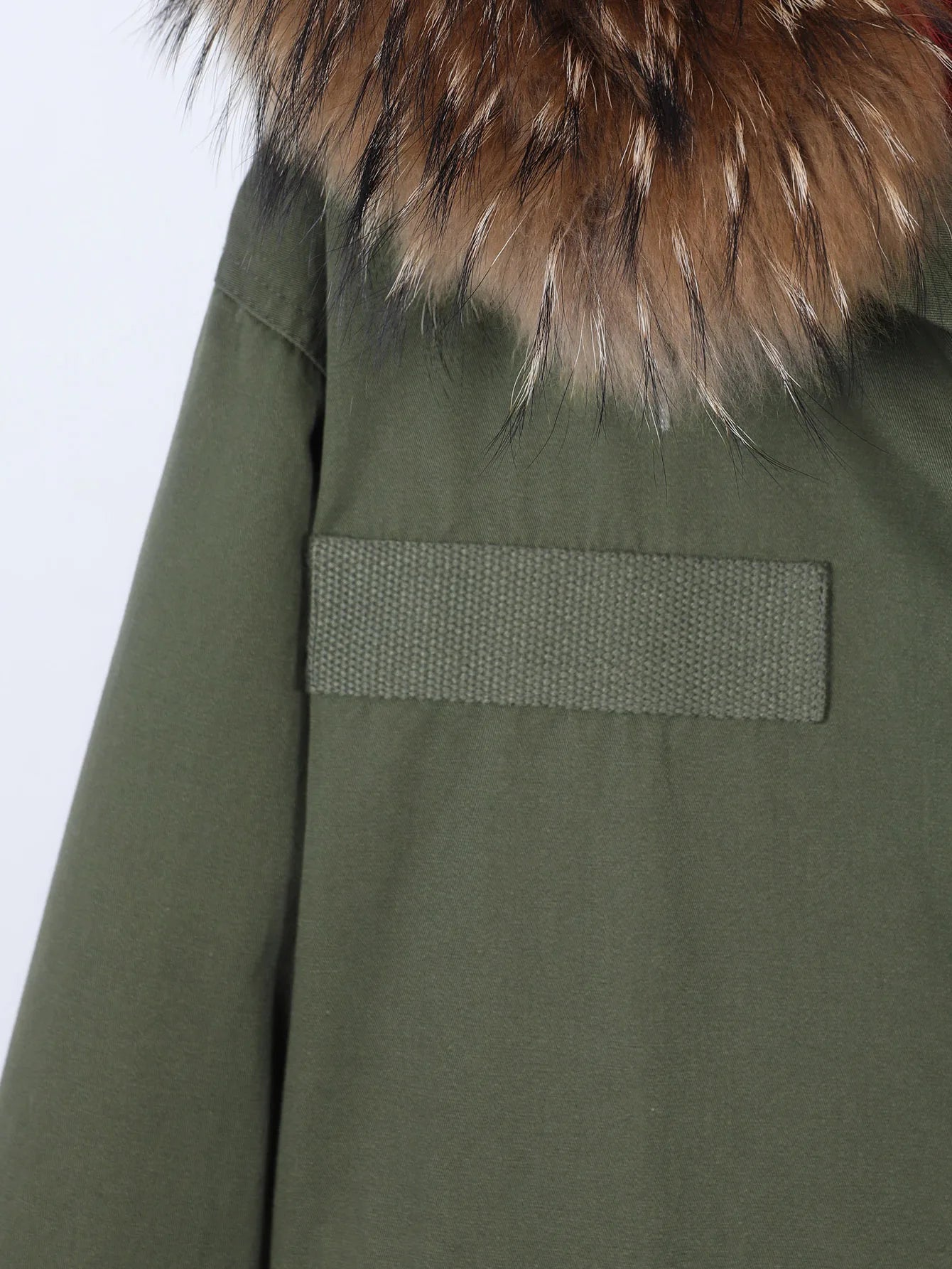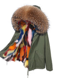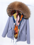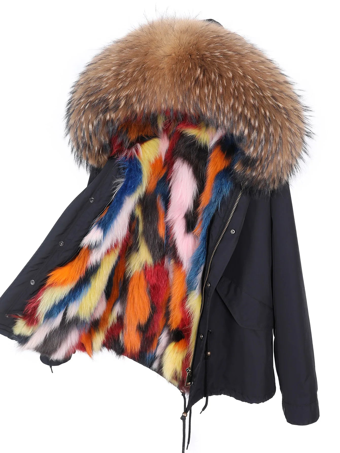 2025 Maomaokong New Women Winter Fur Coat Fox Lining Jacket Natural Real Raccoon Collar Parka Fox Fur Short Female Clothing