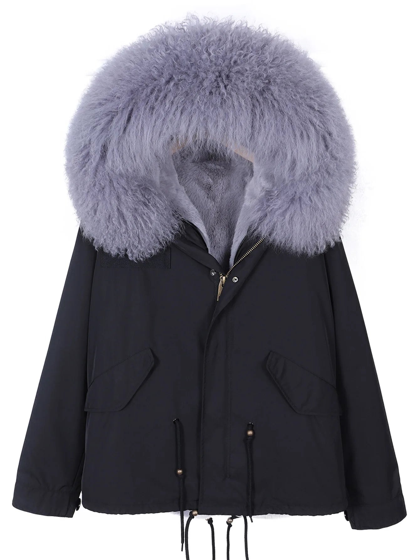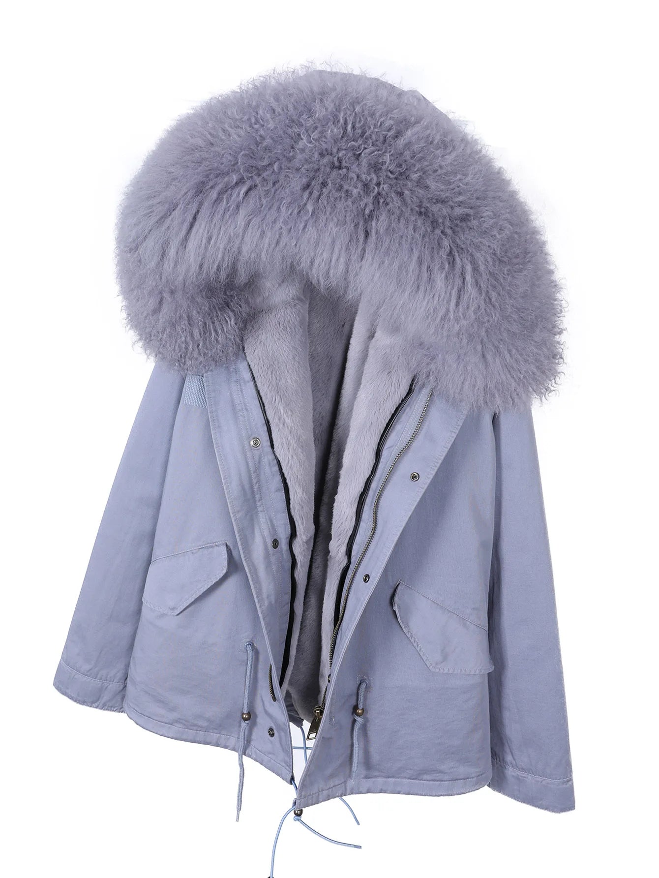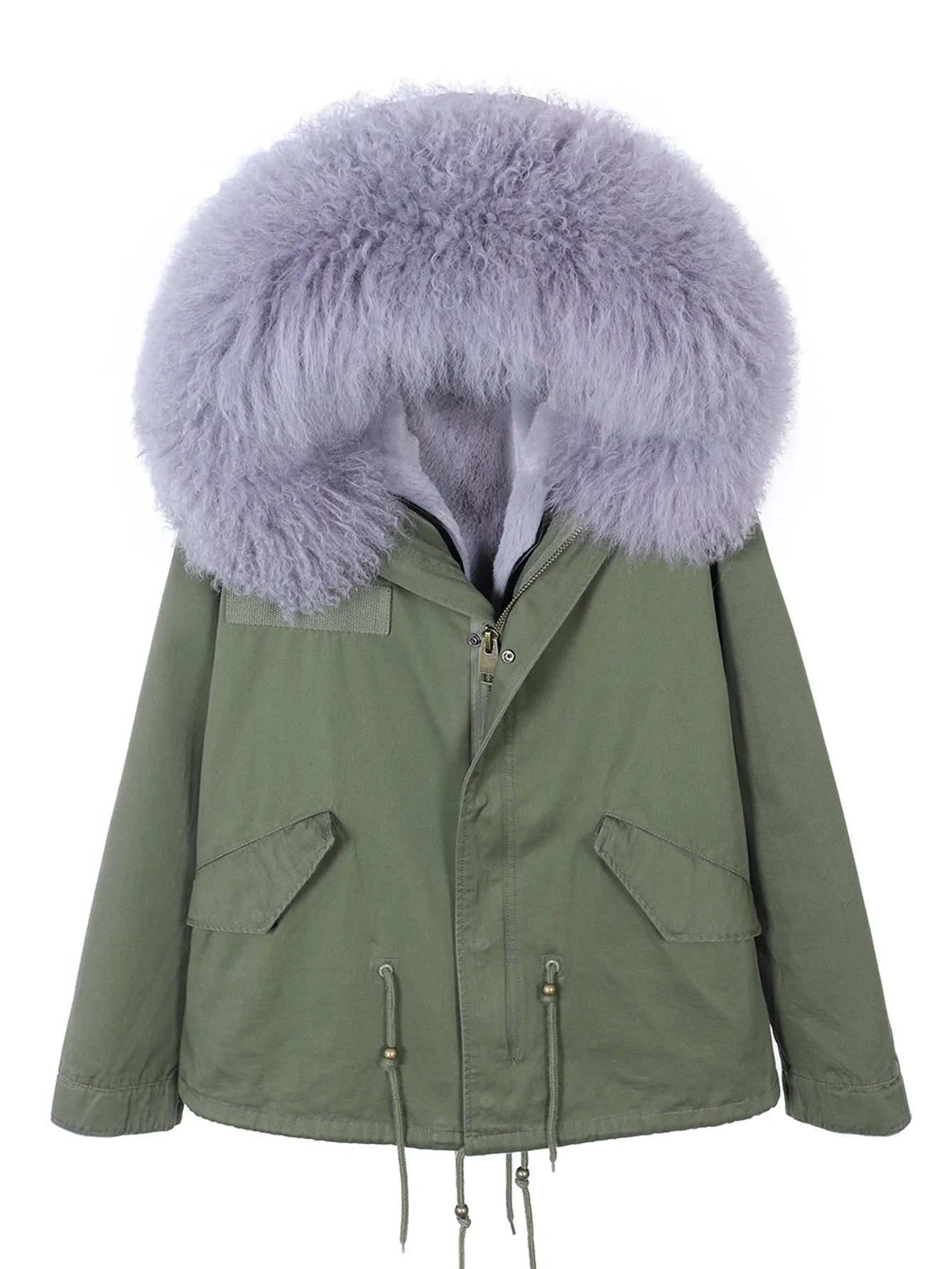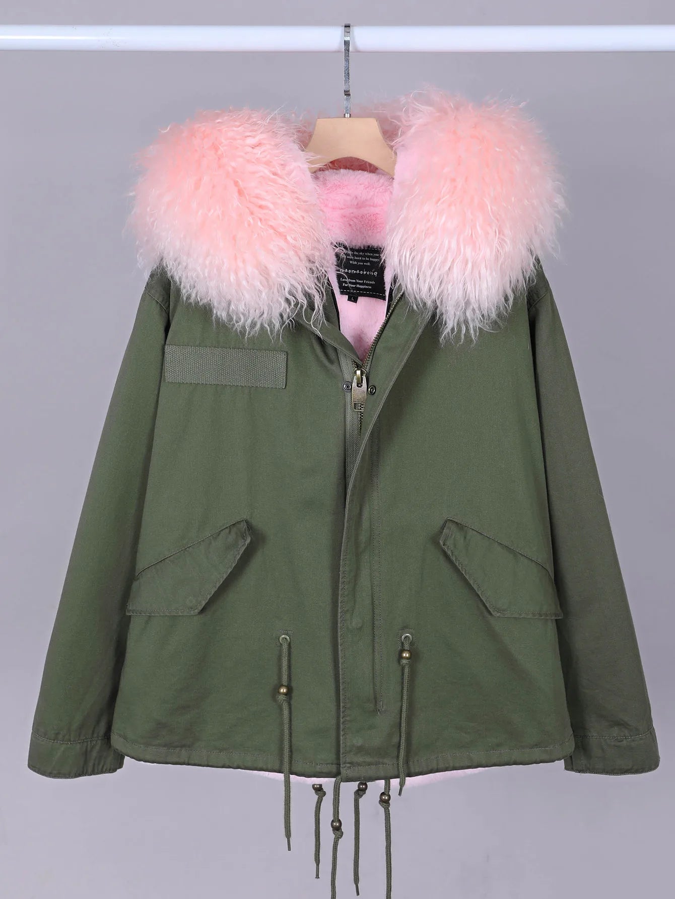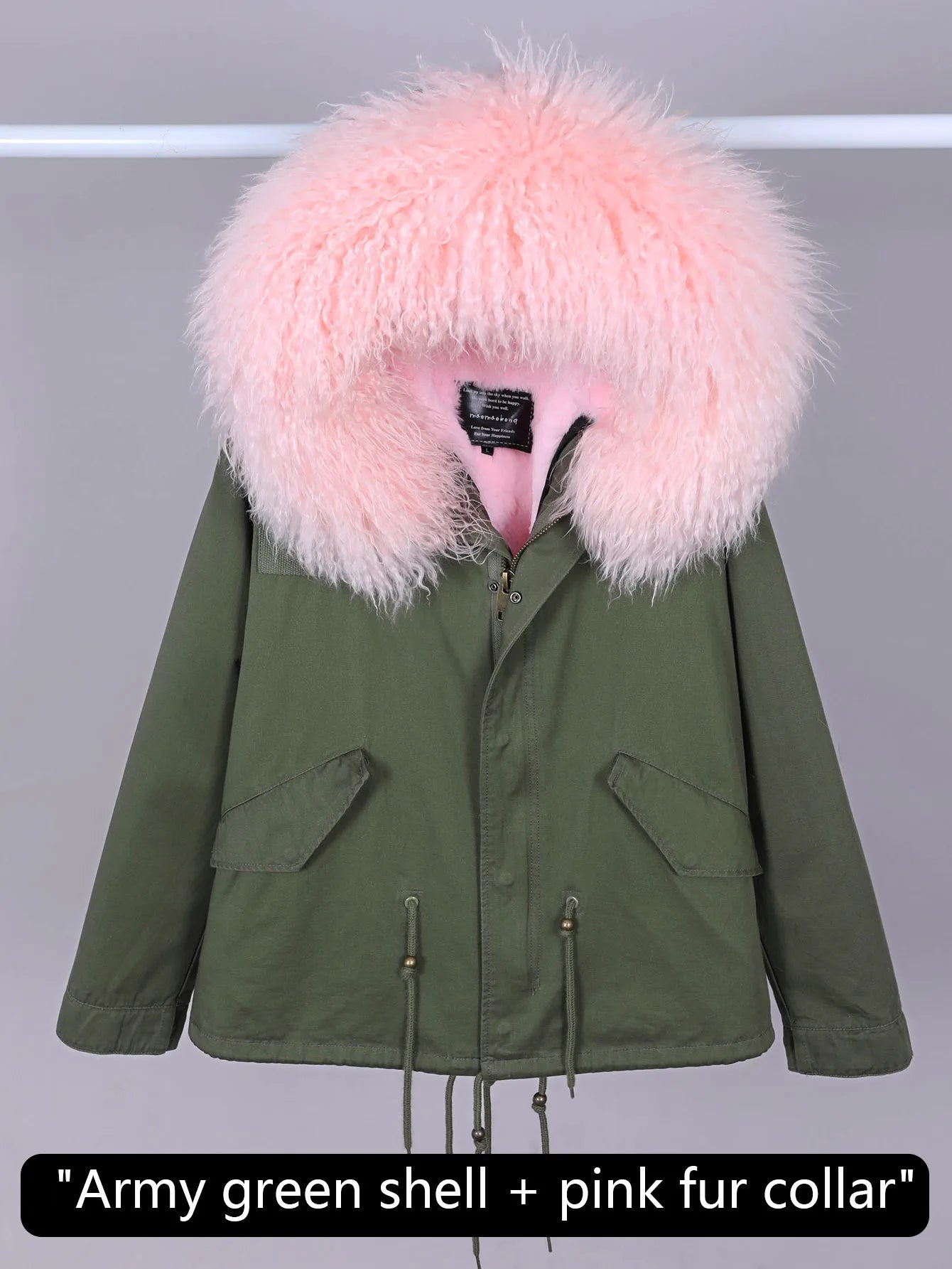 2025 MAOMAOKONG Women's Winter Parka Jacket with Natural Real Wool Fur Pink Collar Removable plush lining Coat Women's Outerwear
