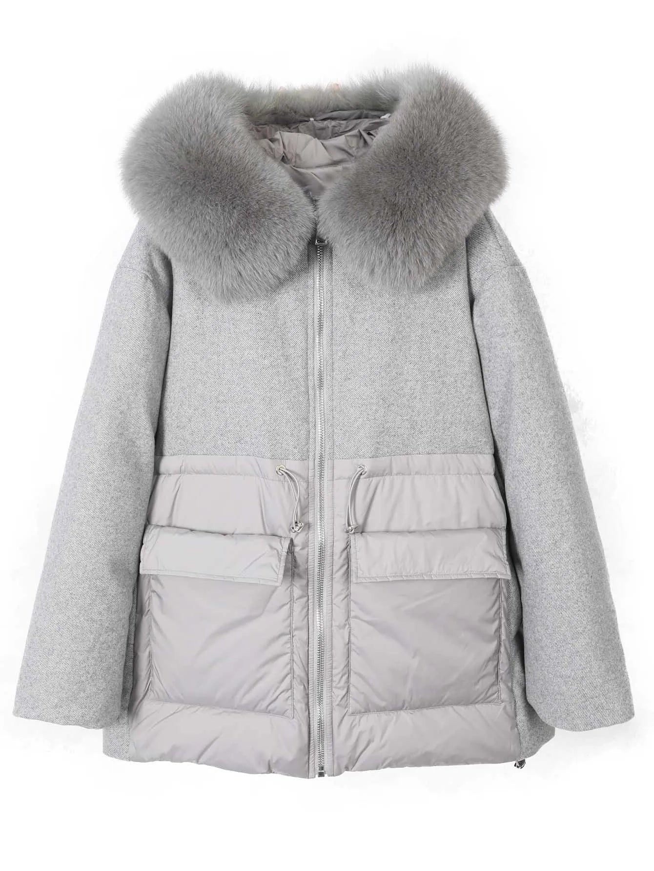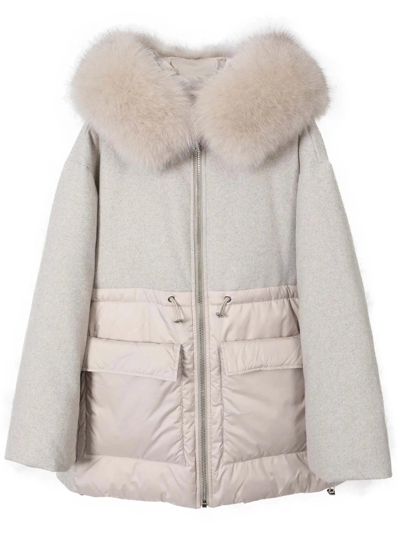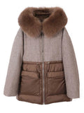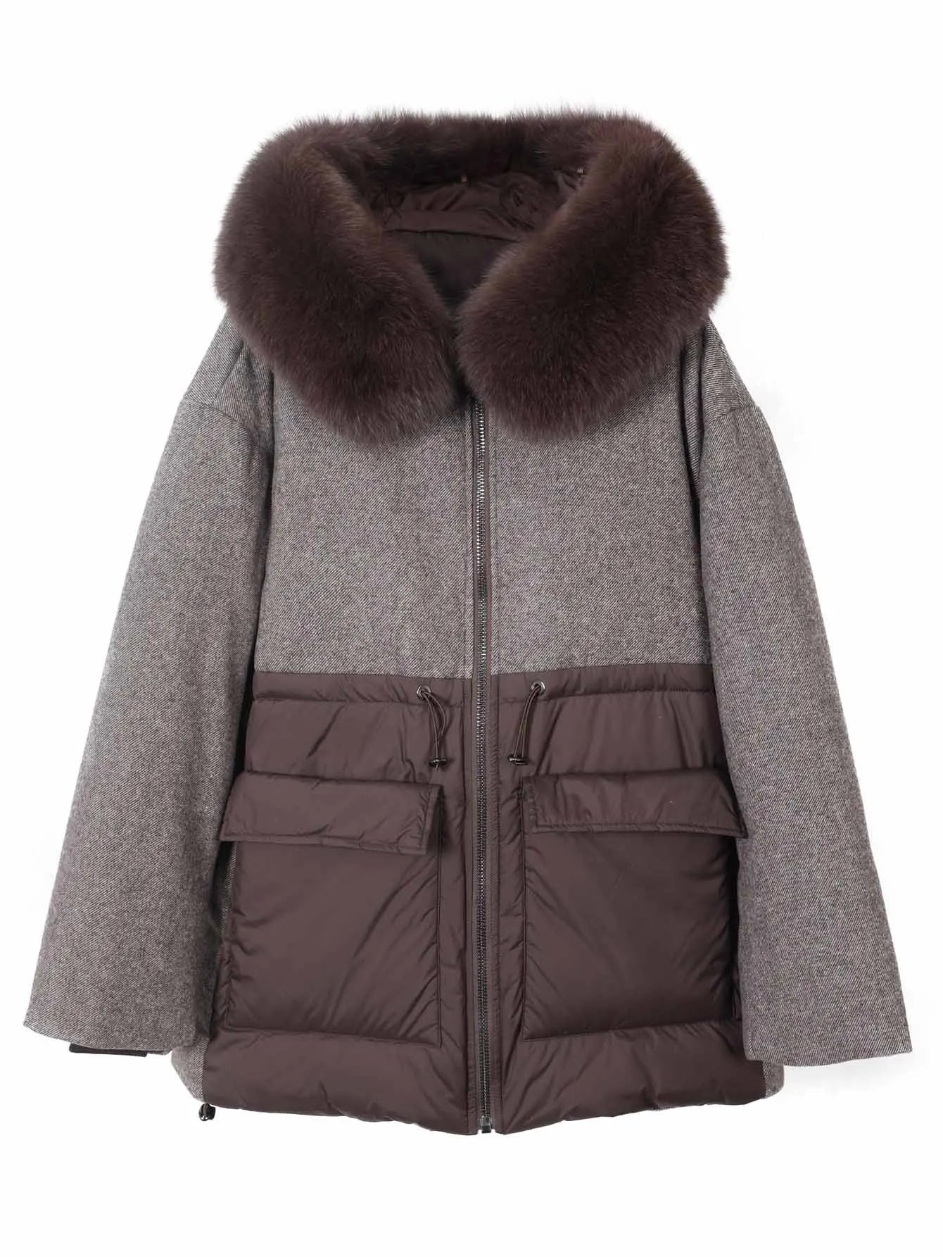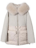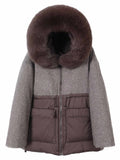 2025 NEW Maomaokong Real Fox Fur Collar Women's Winter Down Jacket Coffee Wool Fabric Patching Cool Oversized Zipper Fashion
