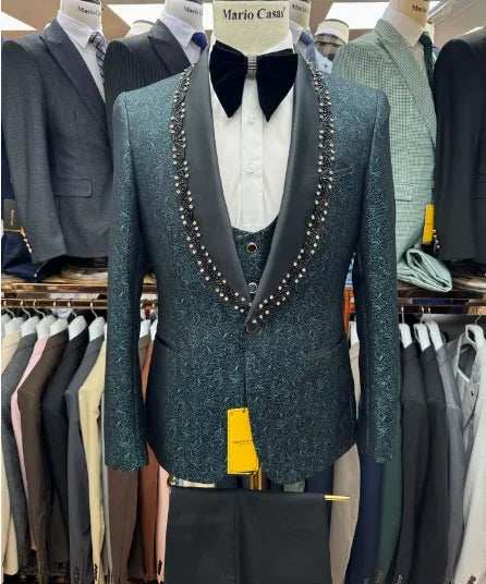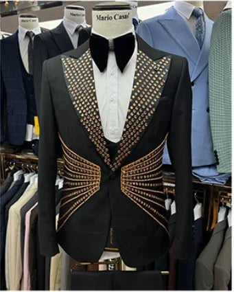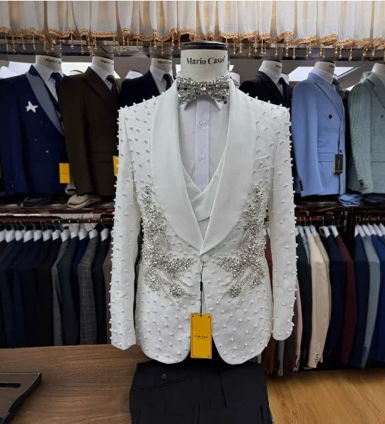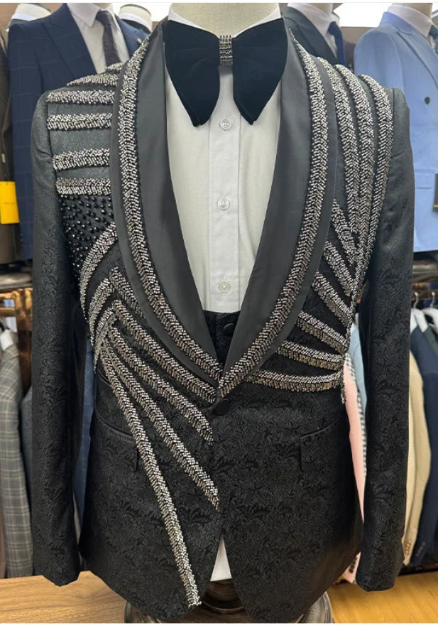 2025 New Men Suit Sets Formal Banquet Luxury Jacquard Blazer Vest Pants Outfits Wedding Grooms Custom Fashion Slim Fit Costumes