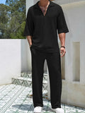 2025 New Spring summer Men's retro casual suit collar solid color half-sleeved shirt loose drawstring pants Two-piece beach Suit