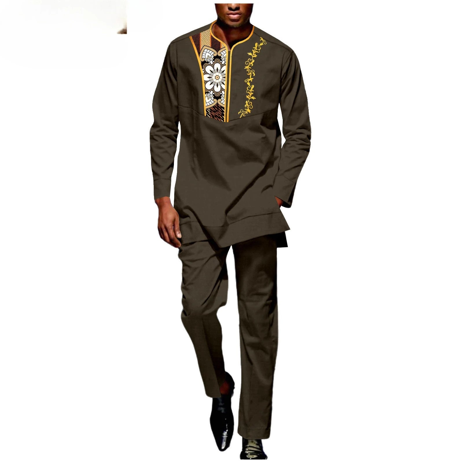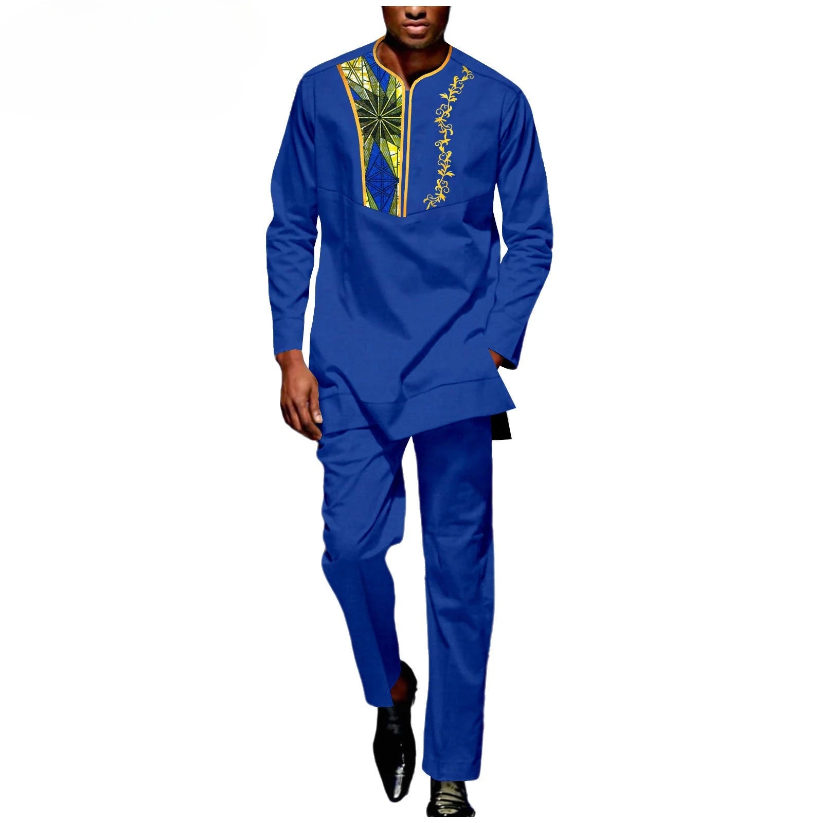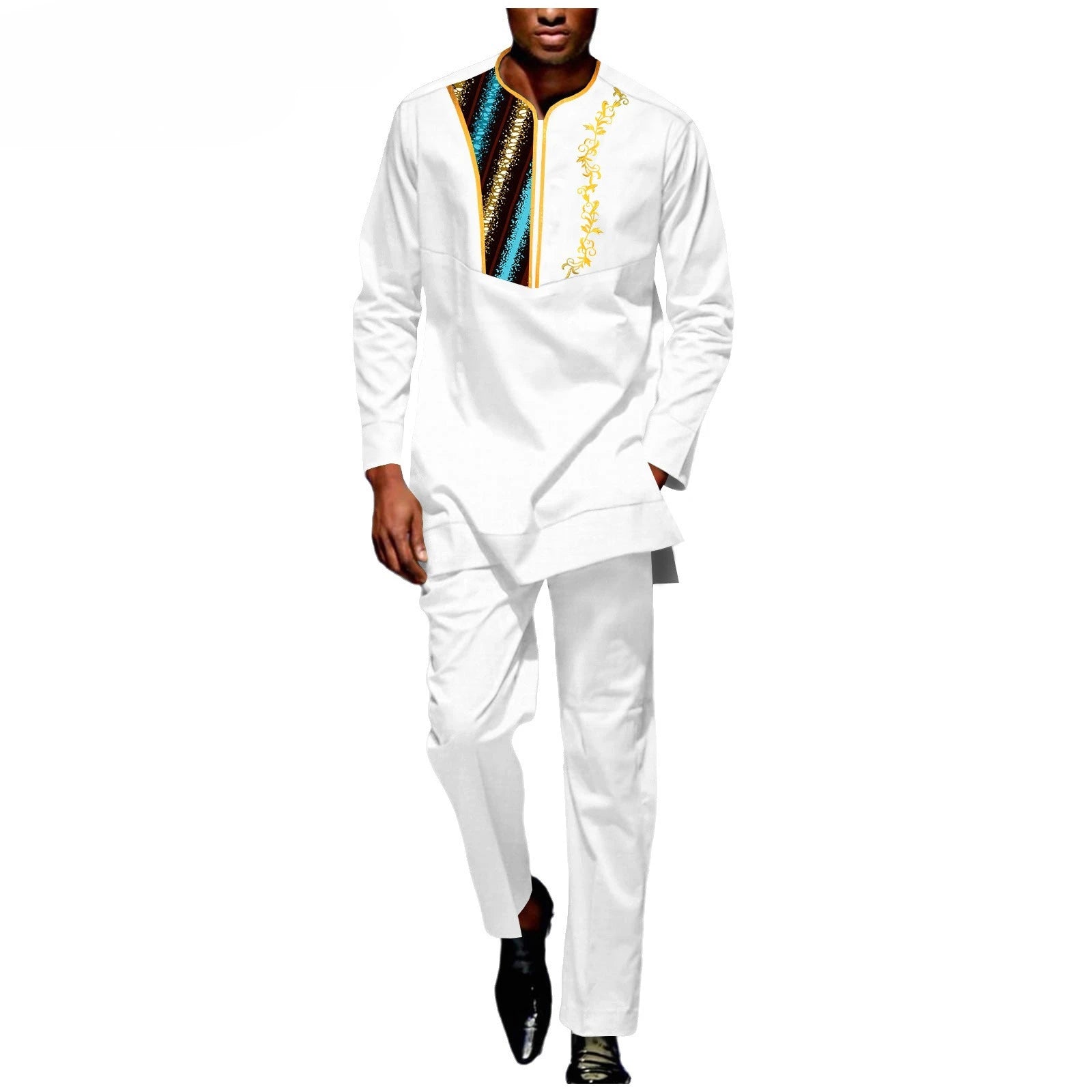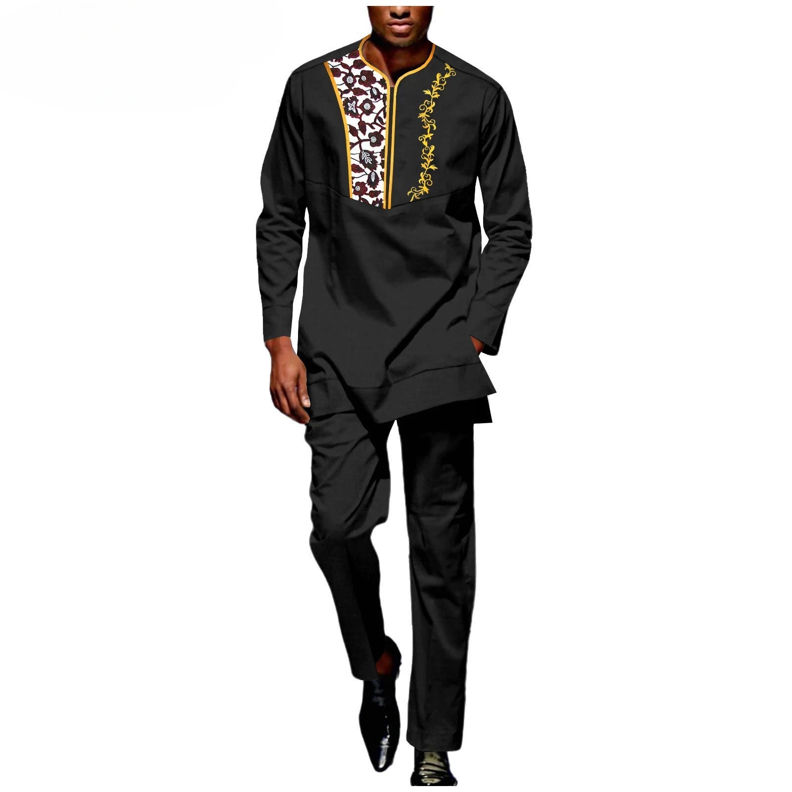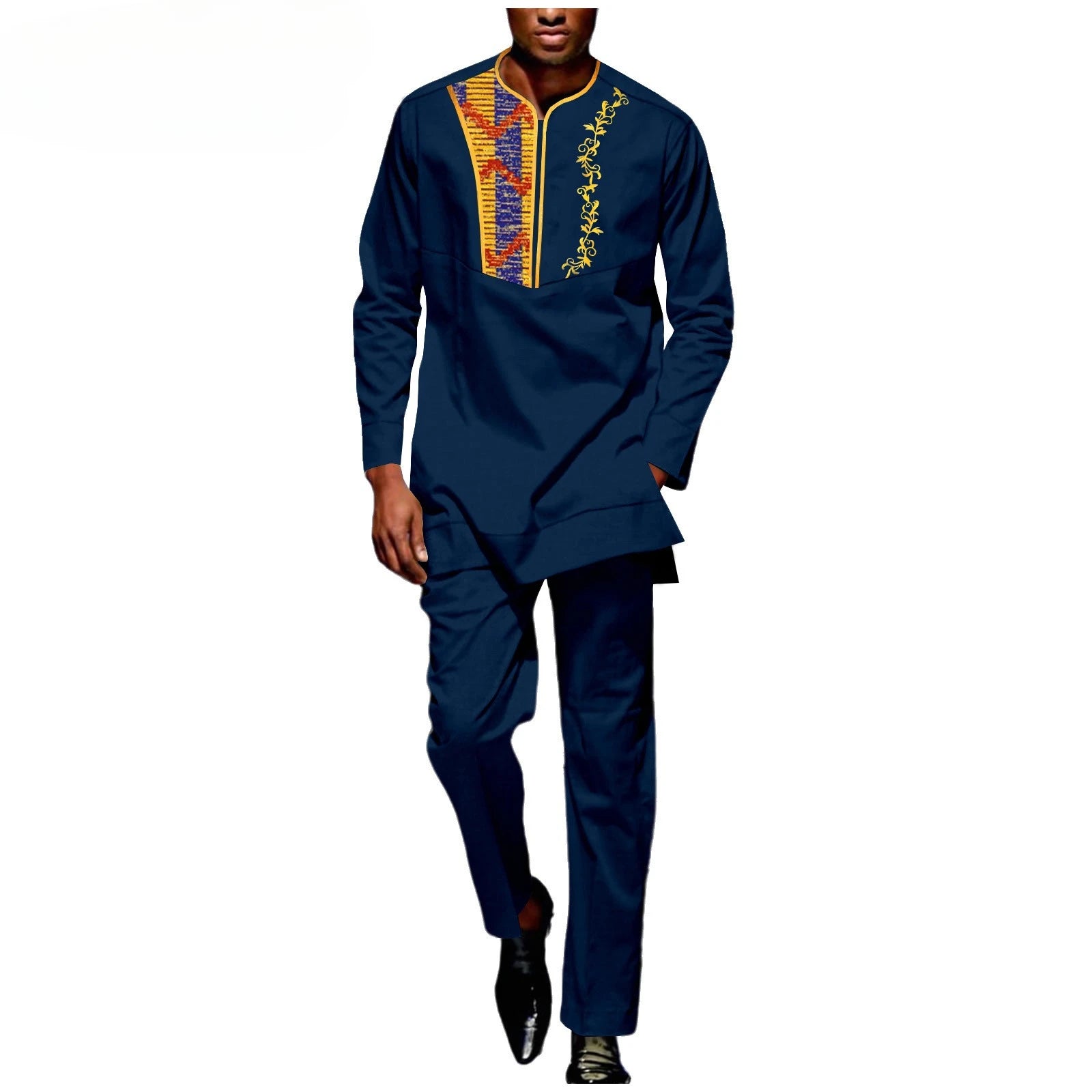 2025 Original Design Nigerian Print Men’s Set Long Shirt Patch Elastic Waist Pants Tailored African Ethnic Costumes Party Wear