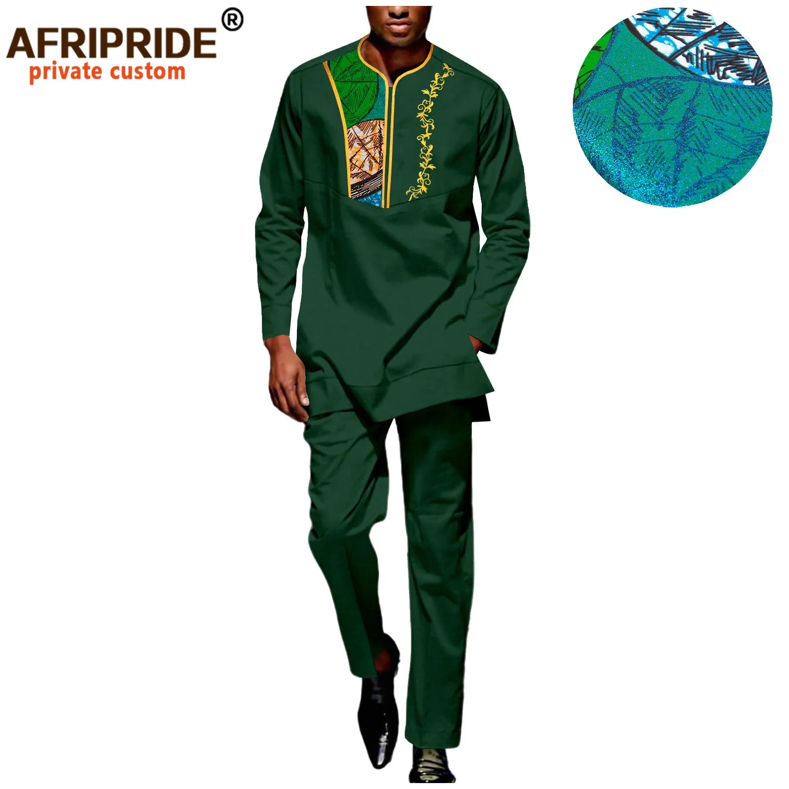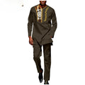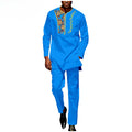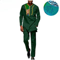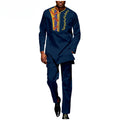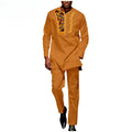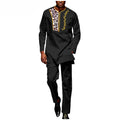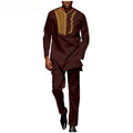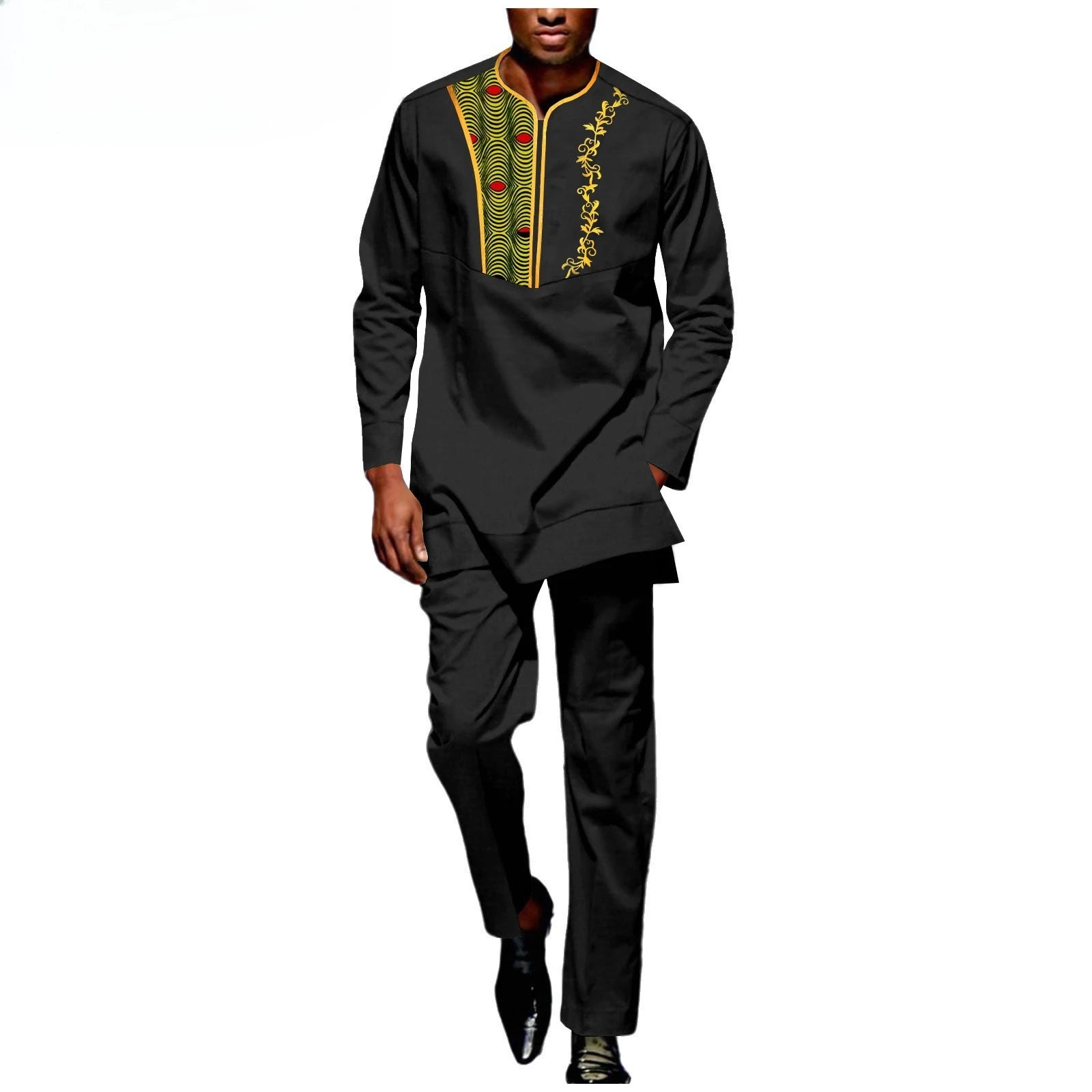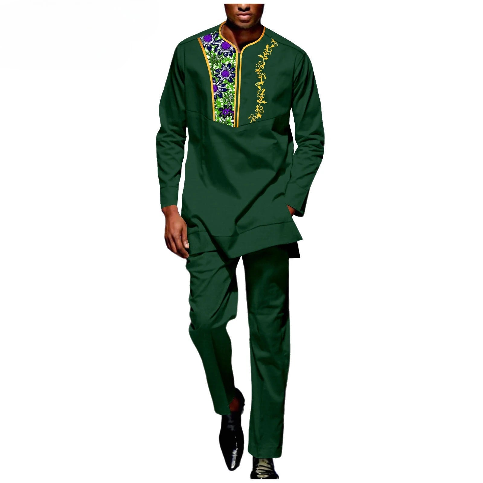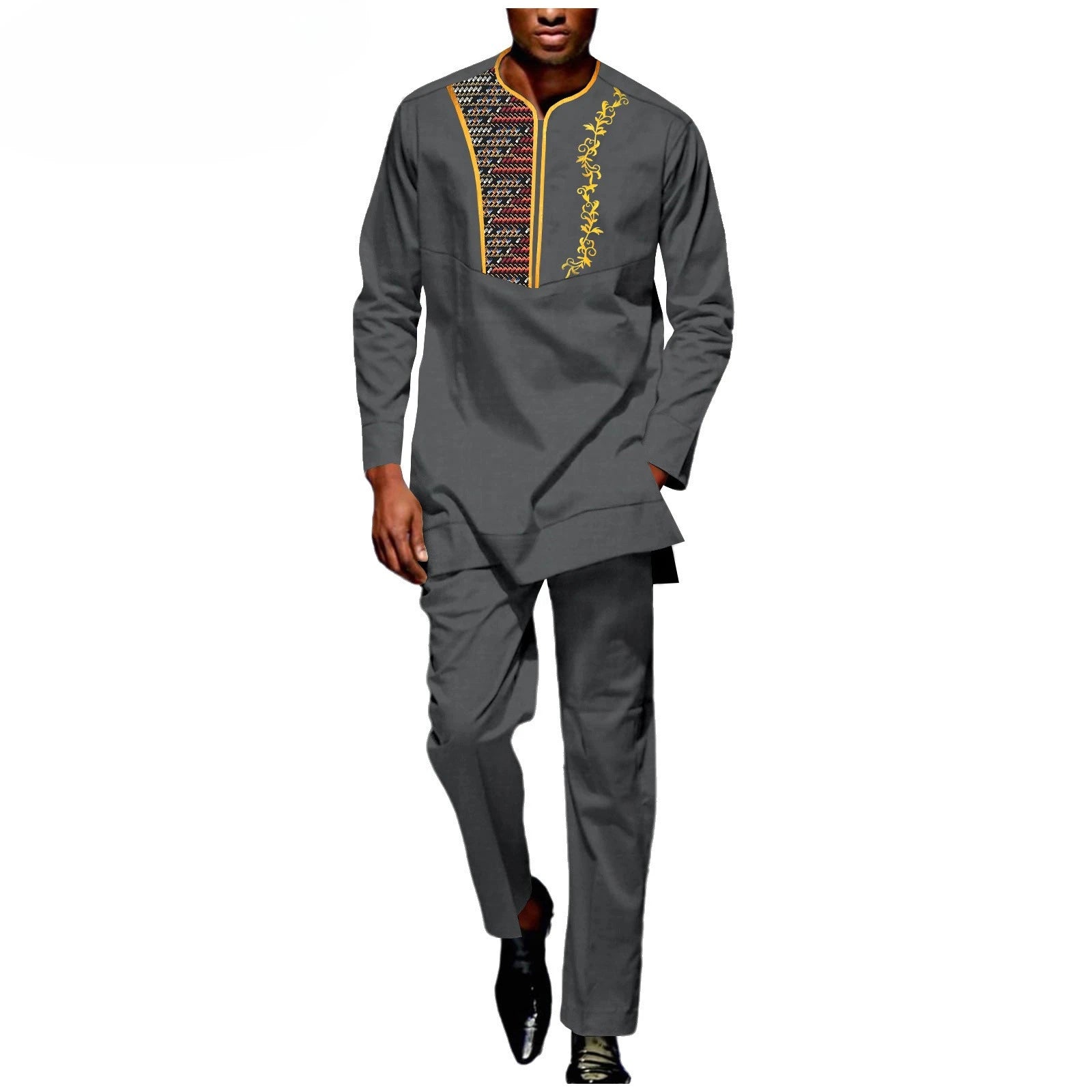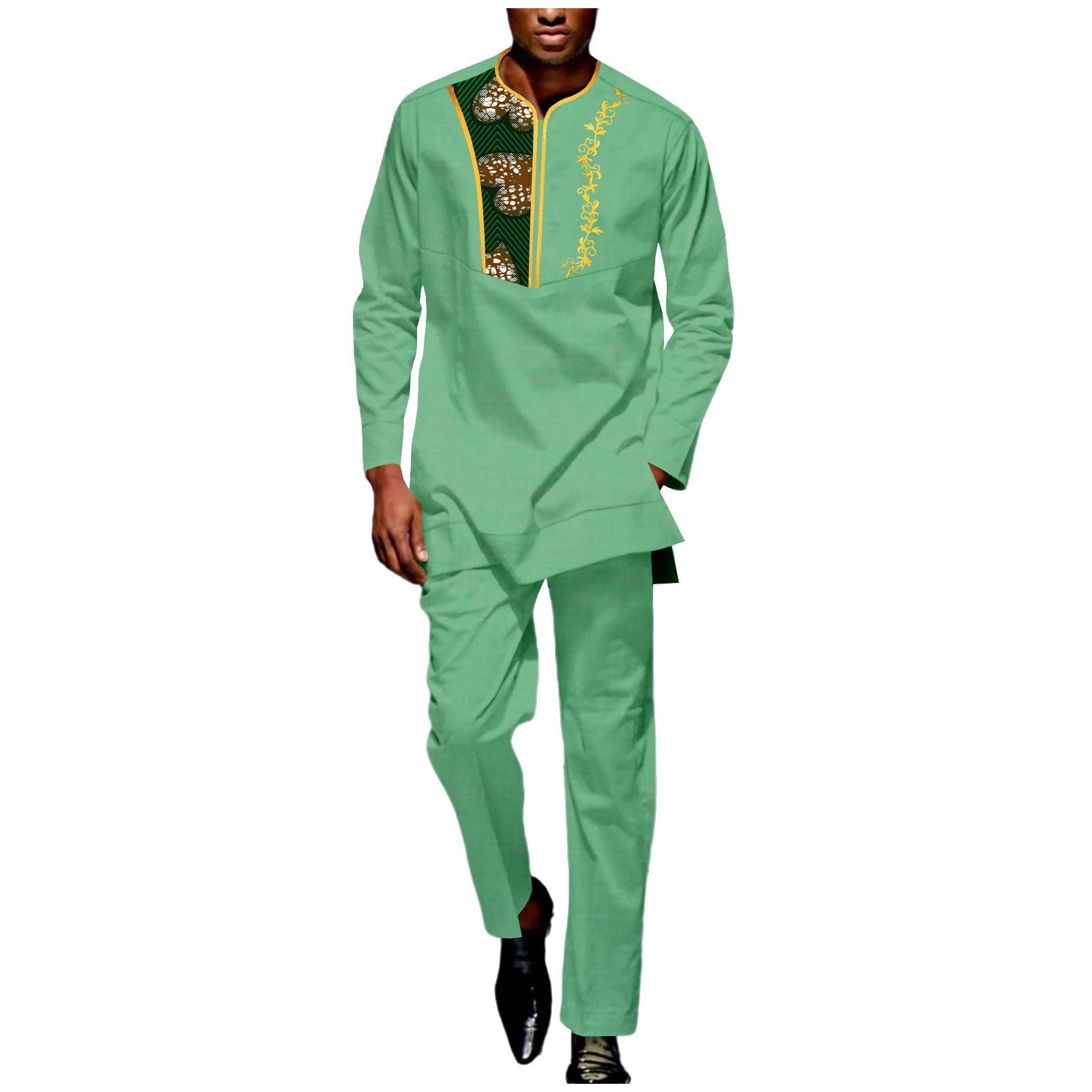 2025 Original Design Nigerian Print Men’s Set Long Shirt Patch Elastic Waist Pants Tailored African Ethnic Costumes Party Wear