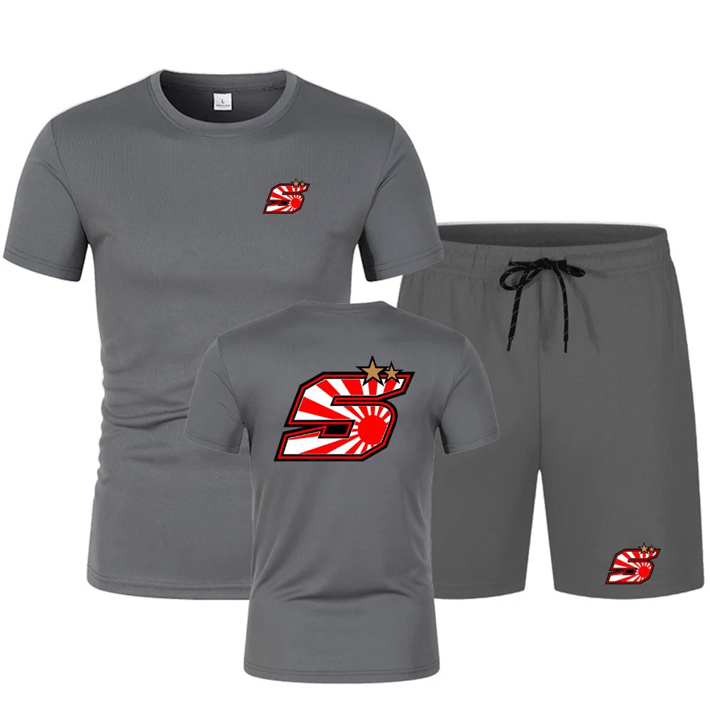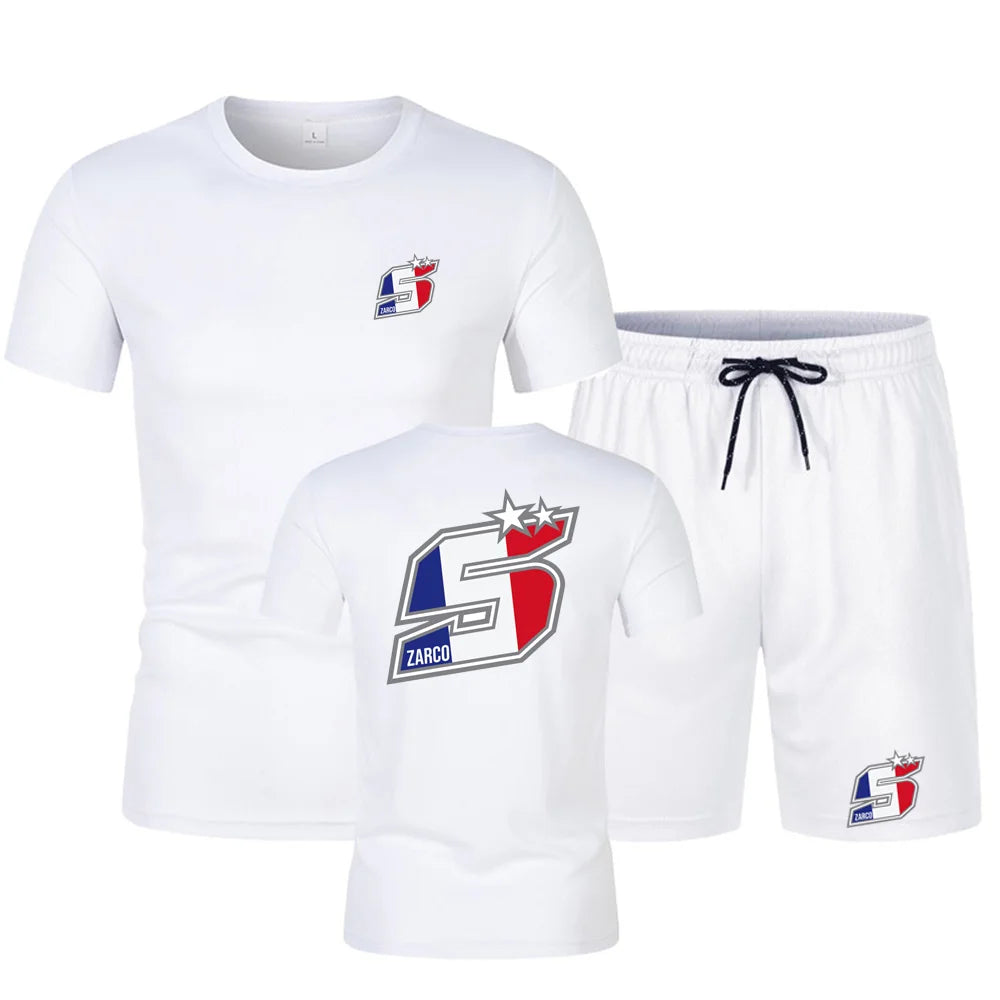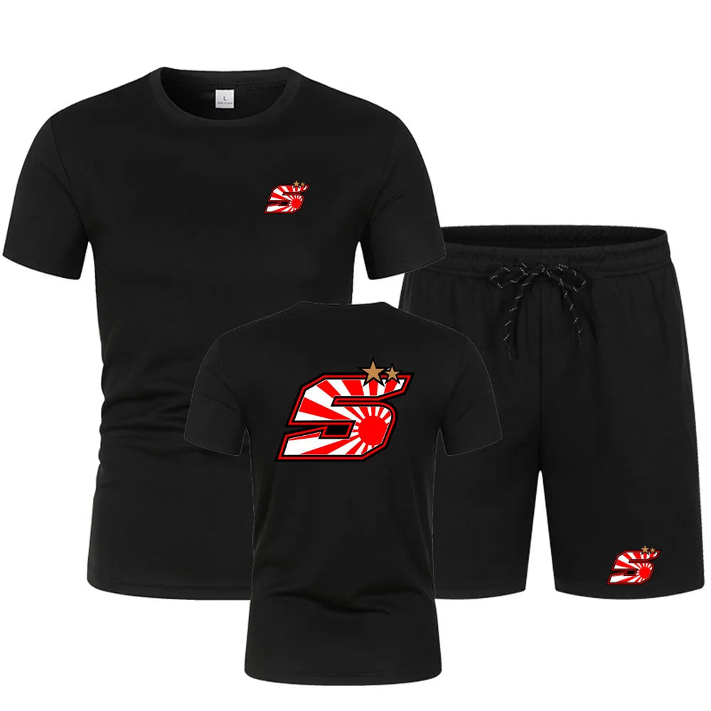 2025 Summer New Men's Johann Zarco 5 Logo Printed Fashion Round Neck Hip Hop T-shirt Top+Sports Shorts Street Wear Casual Set