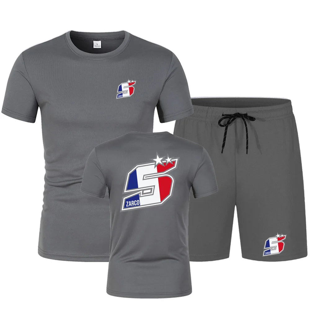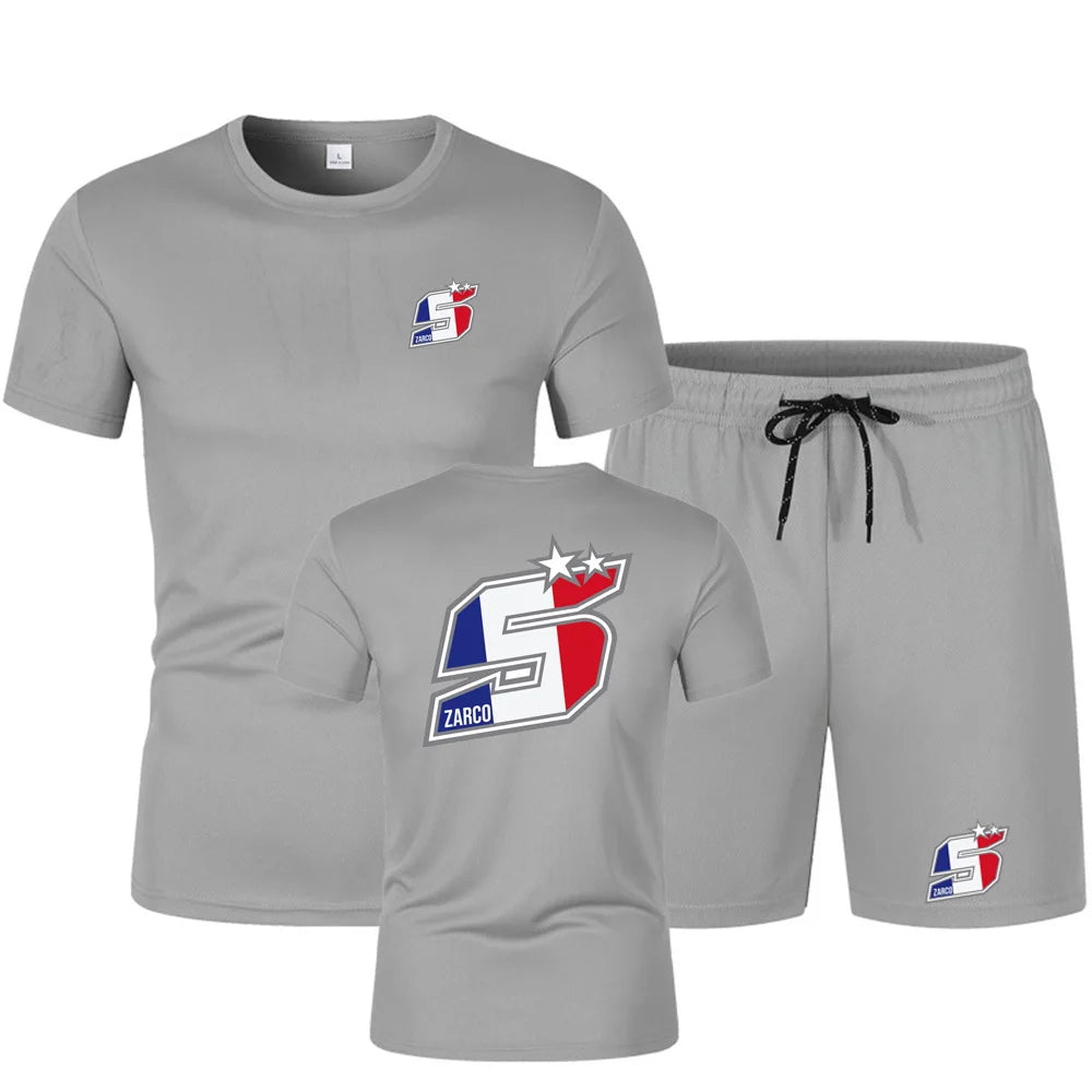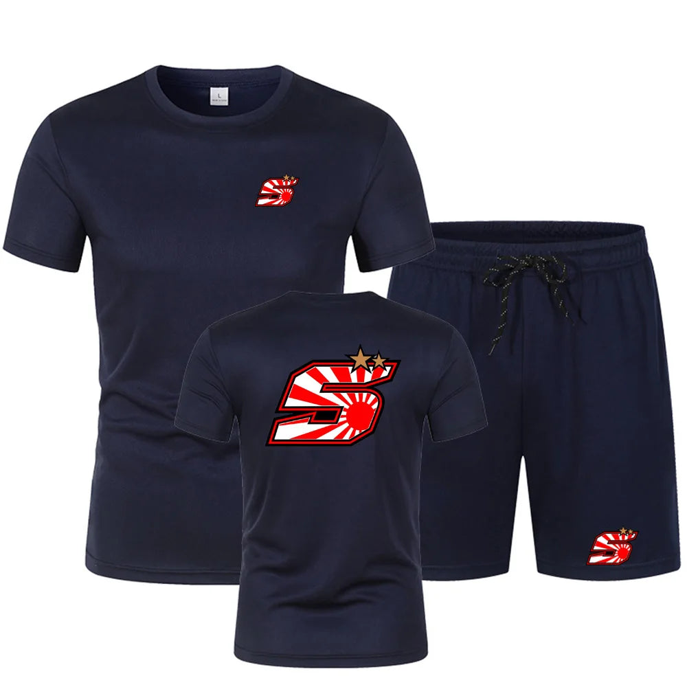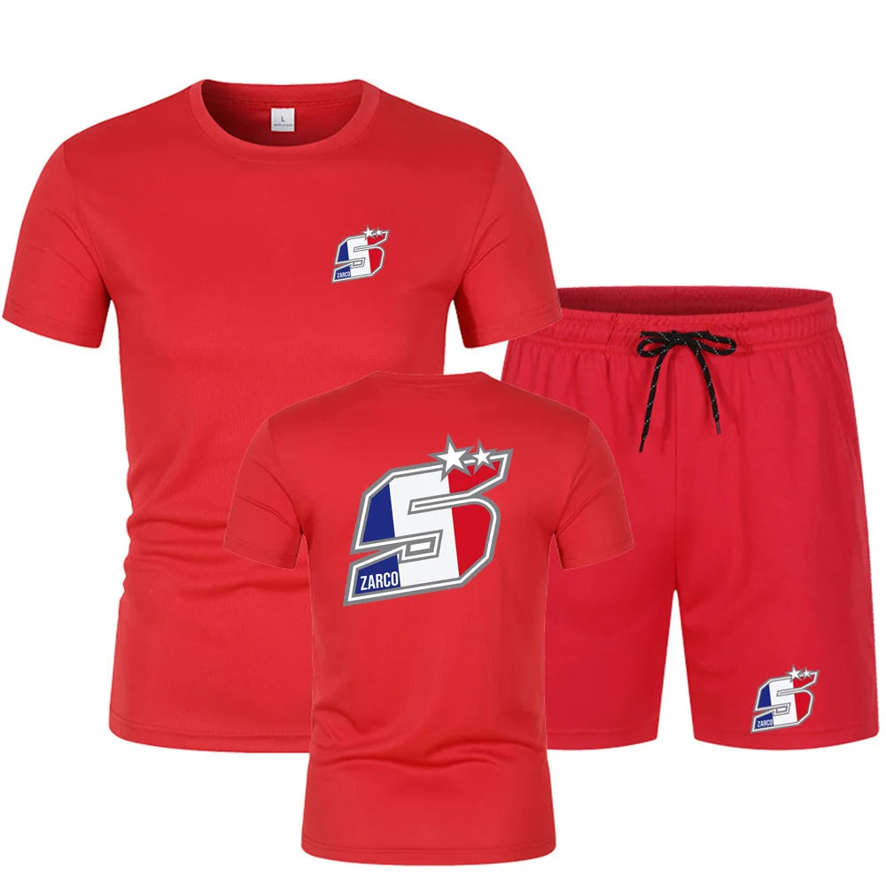 2025 Summer New Men's Johann Zarco 5 Logo Printed Fashion Round Neck Hip Hop T-shirt Top+Sports Shorts Street Wear Casual Set