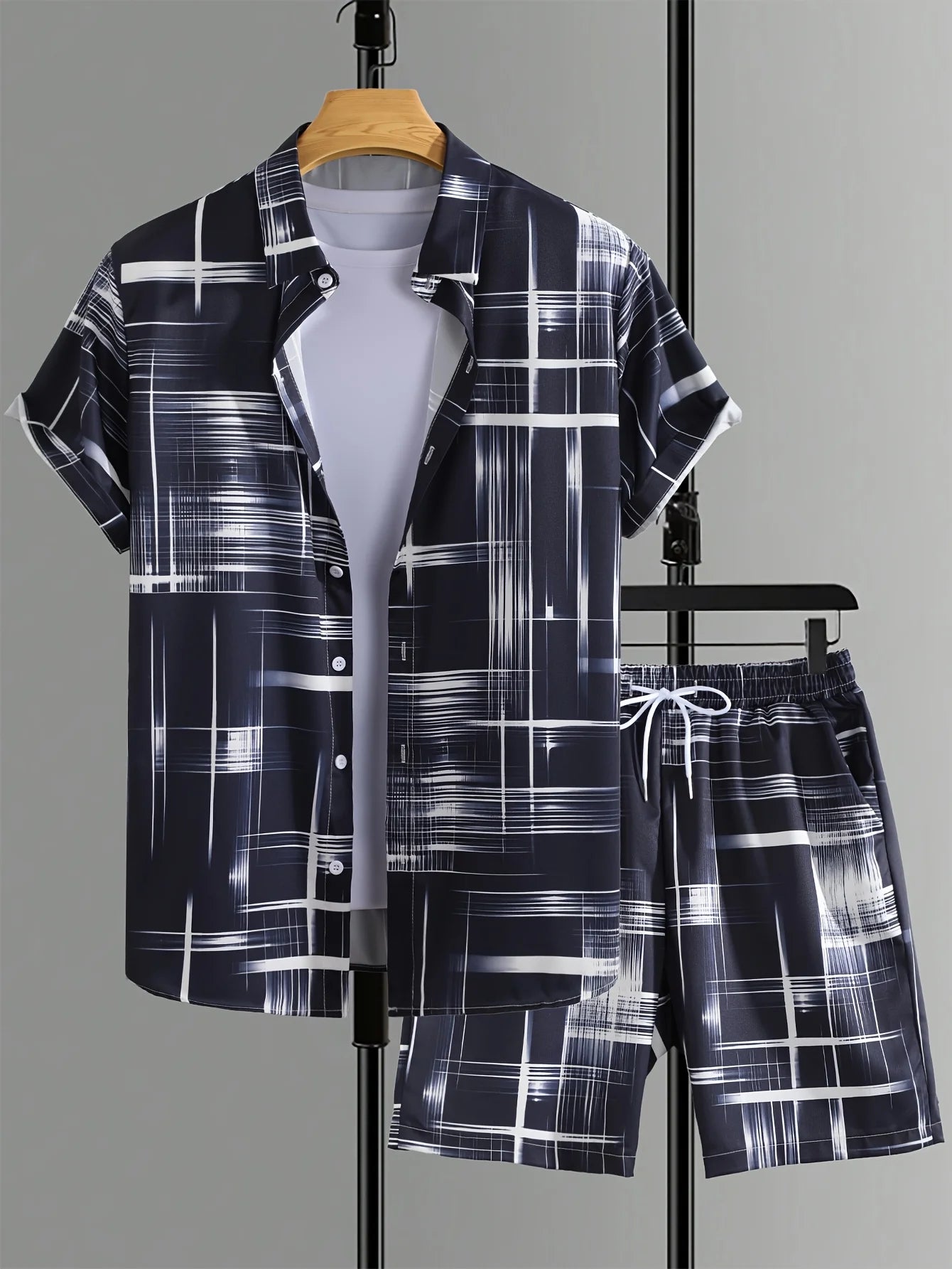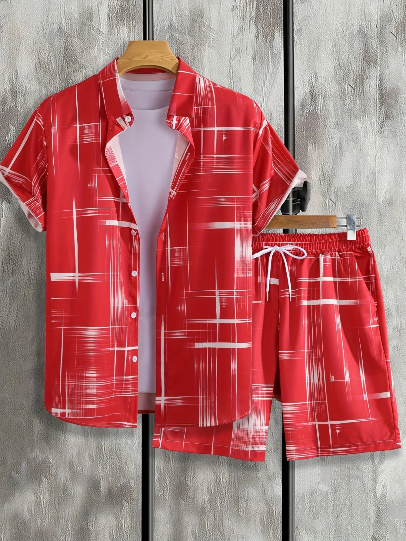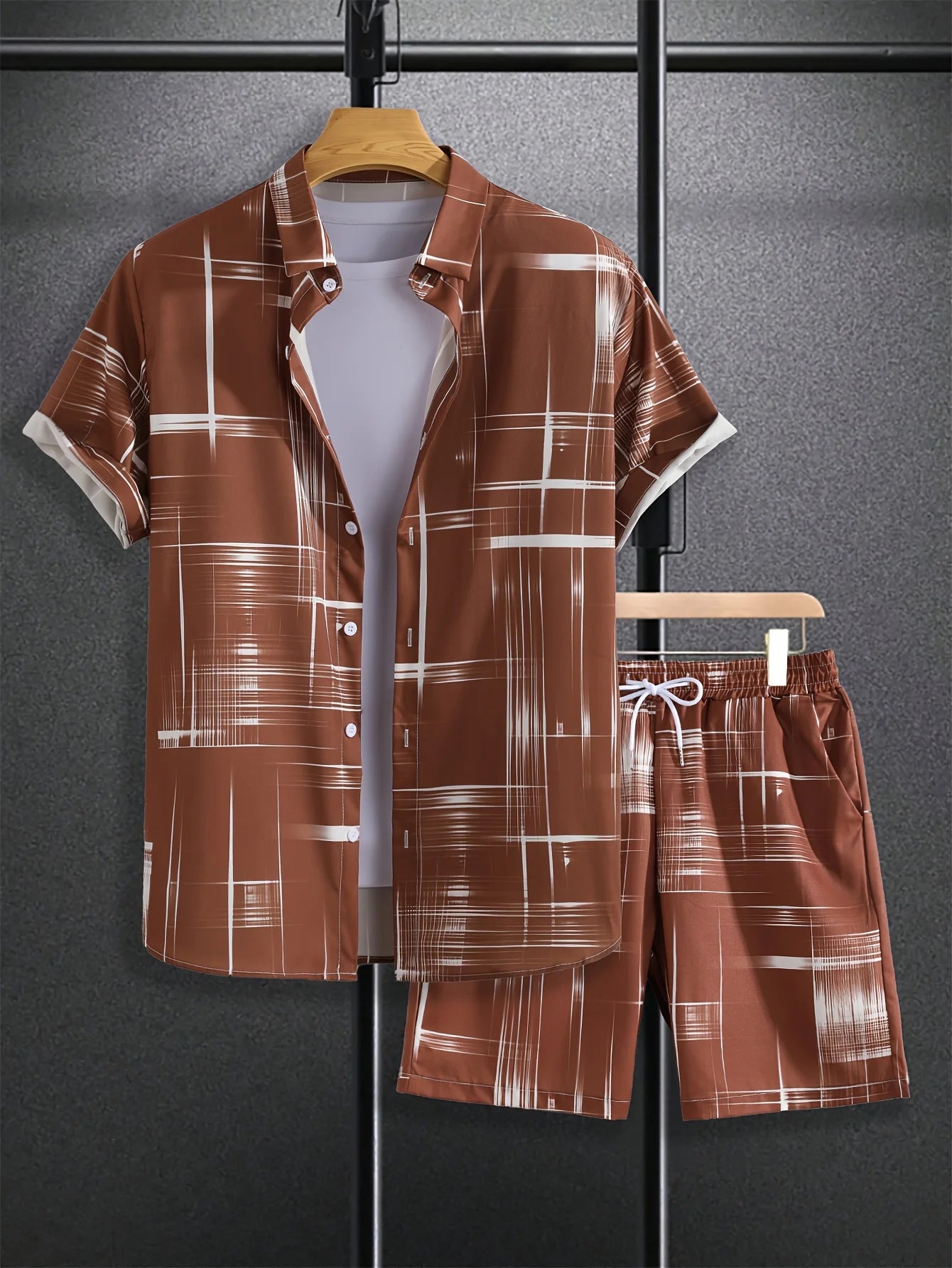 2pcs Fashion Men's Stylish Gradient Prints Shorts Shirt Set Drawstring Waist Summer Beachwear Casual Printed Asian Size