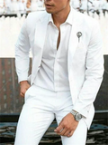 2Piece Fashion Summer White Linen Groom Tuxedos Wedding Suits For Wedding Men Blazers Slim Fit Costume Homme