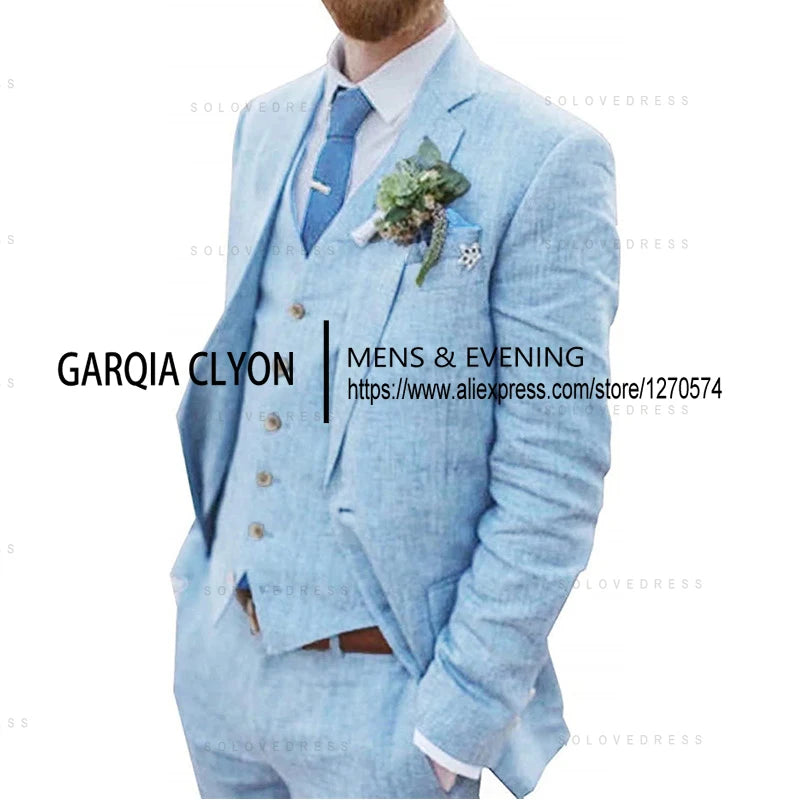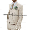 3 Piece Men's Retro Linen Men Suit Beach Wedding Suit Summer Slim Fit Linen Suit Groomsmen For Wedding(Blazer+Vest+Pants)
