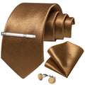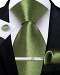 4Pcs Solid Green Brown Black Blue Red Satin 8cm Men Tie Set Handkerchief Cufflinks Wedding Party Accessories Gift for Husband