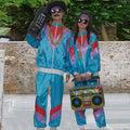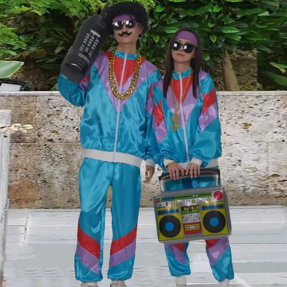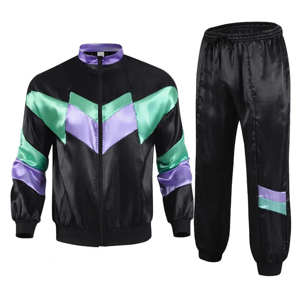 80s Men/Women Coat Pants Set Retro Hip Hop Disco Unisex Tracksuit Casual Color Block Jacket Elastic Waist Trousers Set