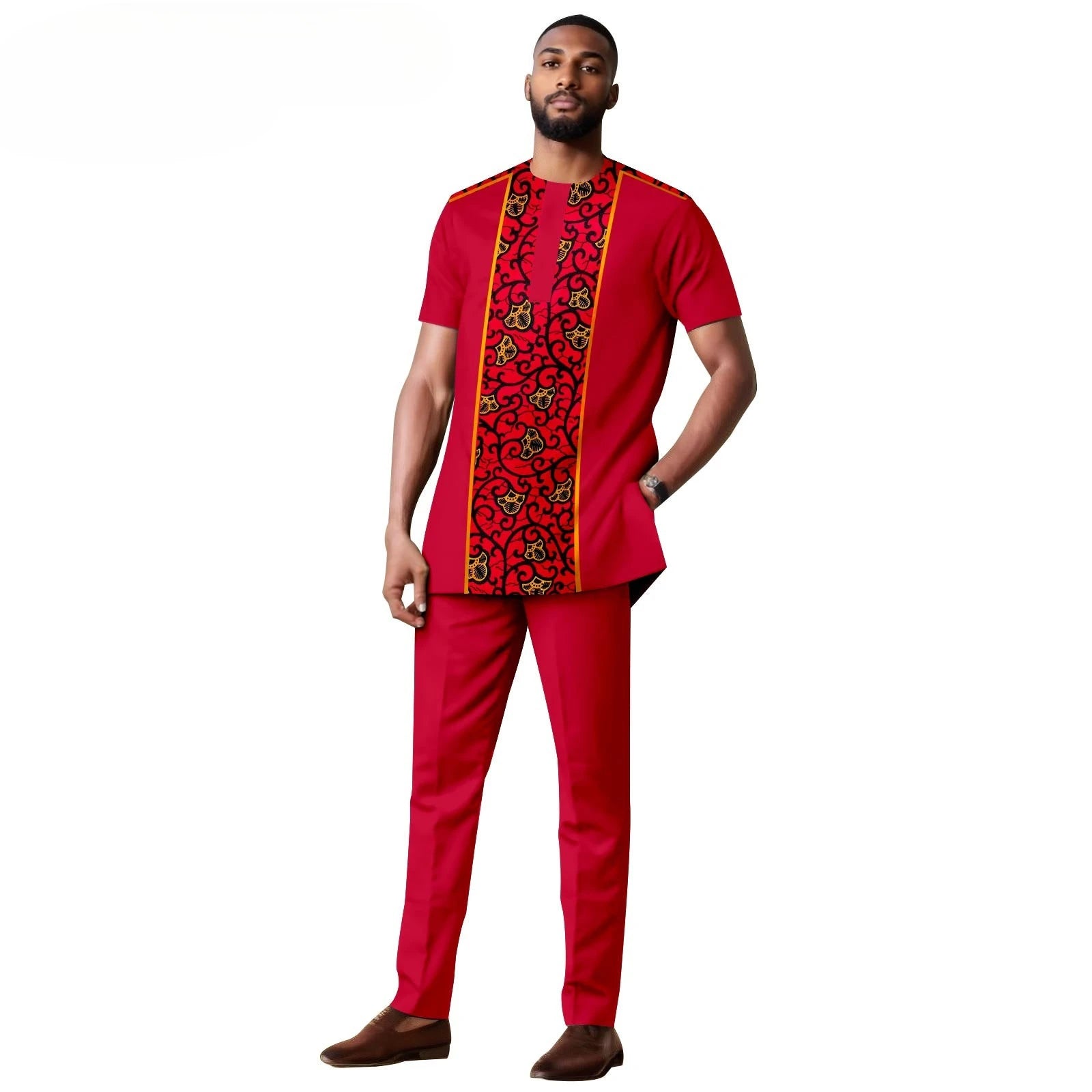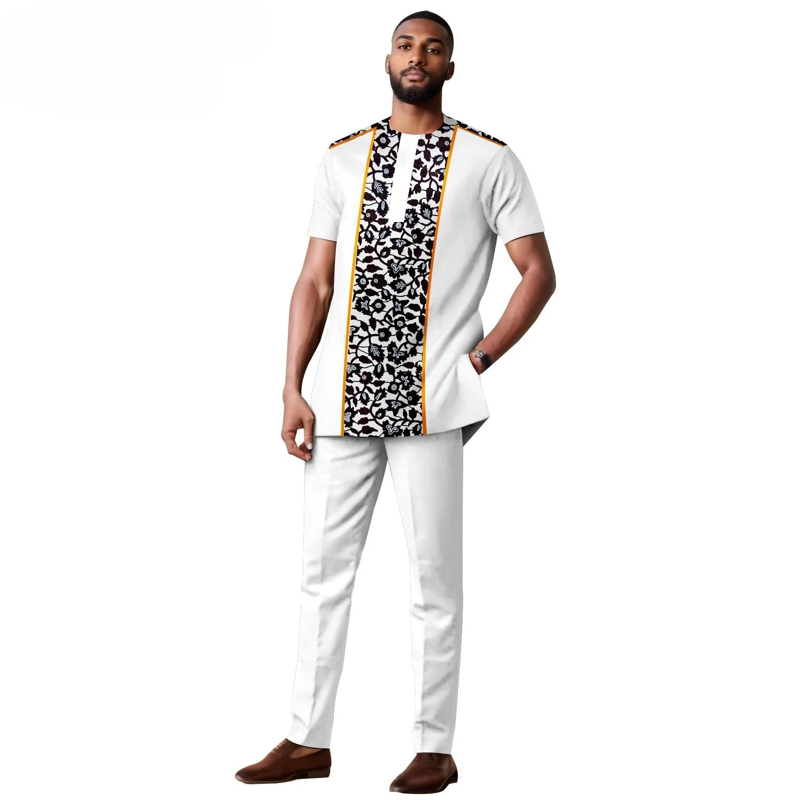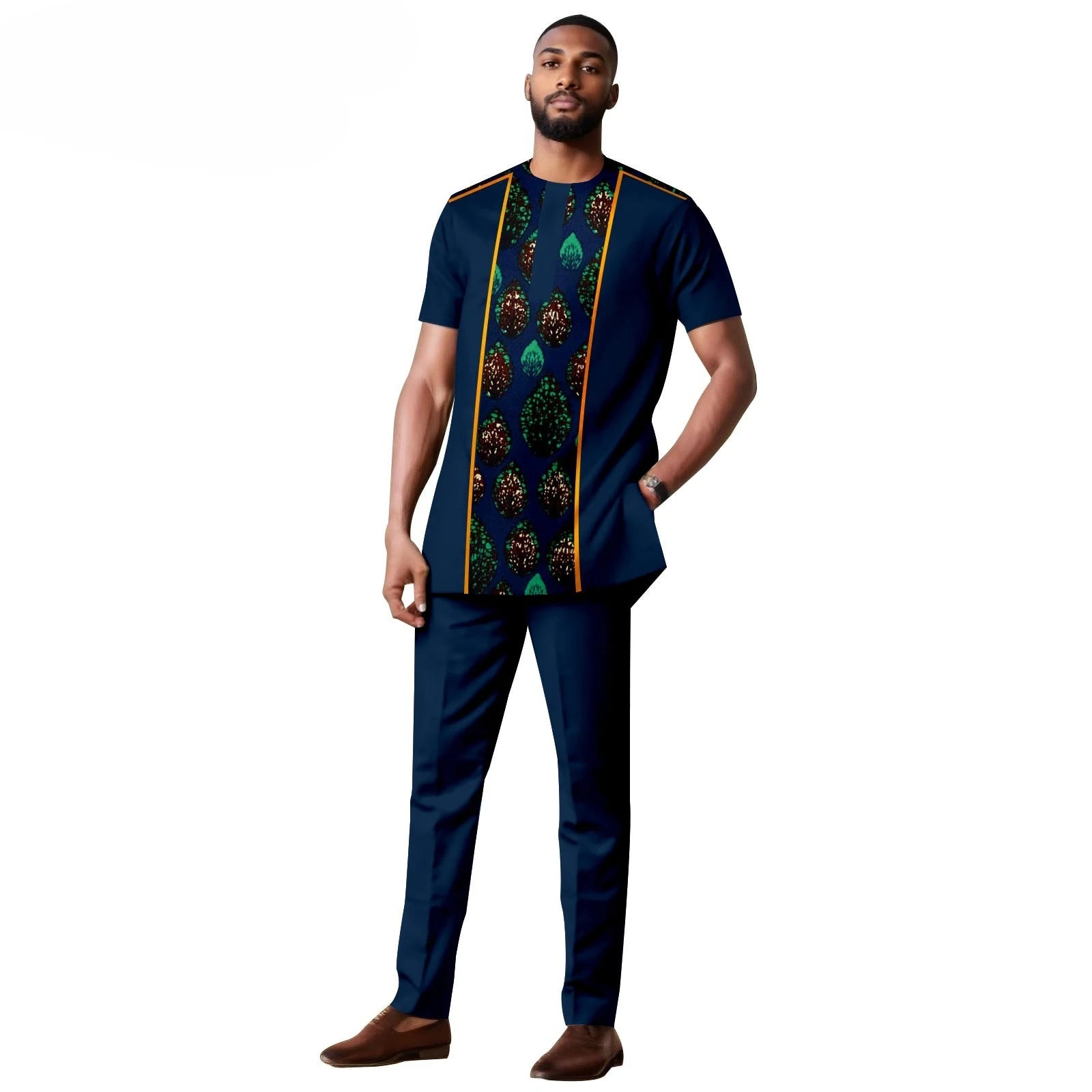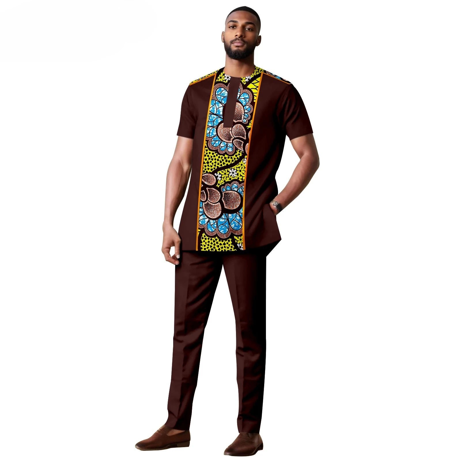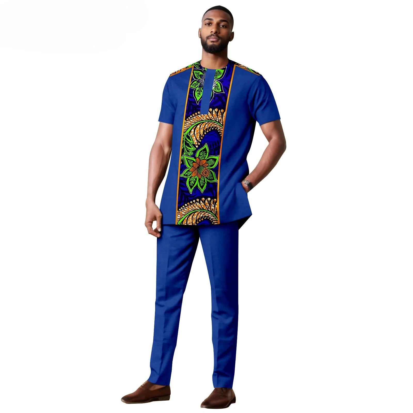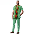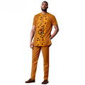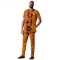 African Clothes for Men Short Sleeve Embroidery Printed Shirts and Pants 2 Piece Set Kaftan Outfits Bazin Riche Suit A2416059