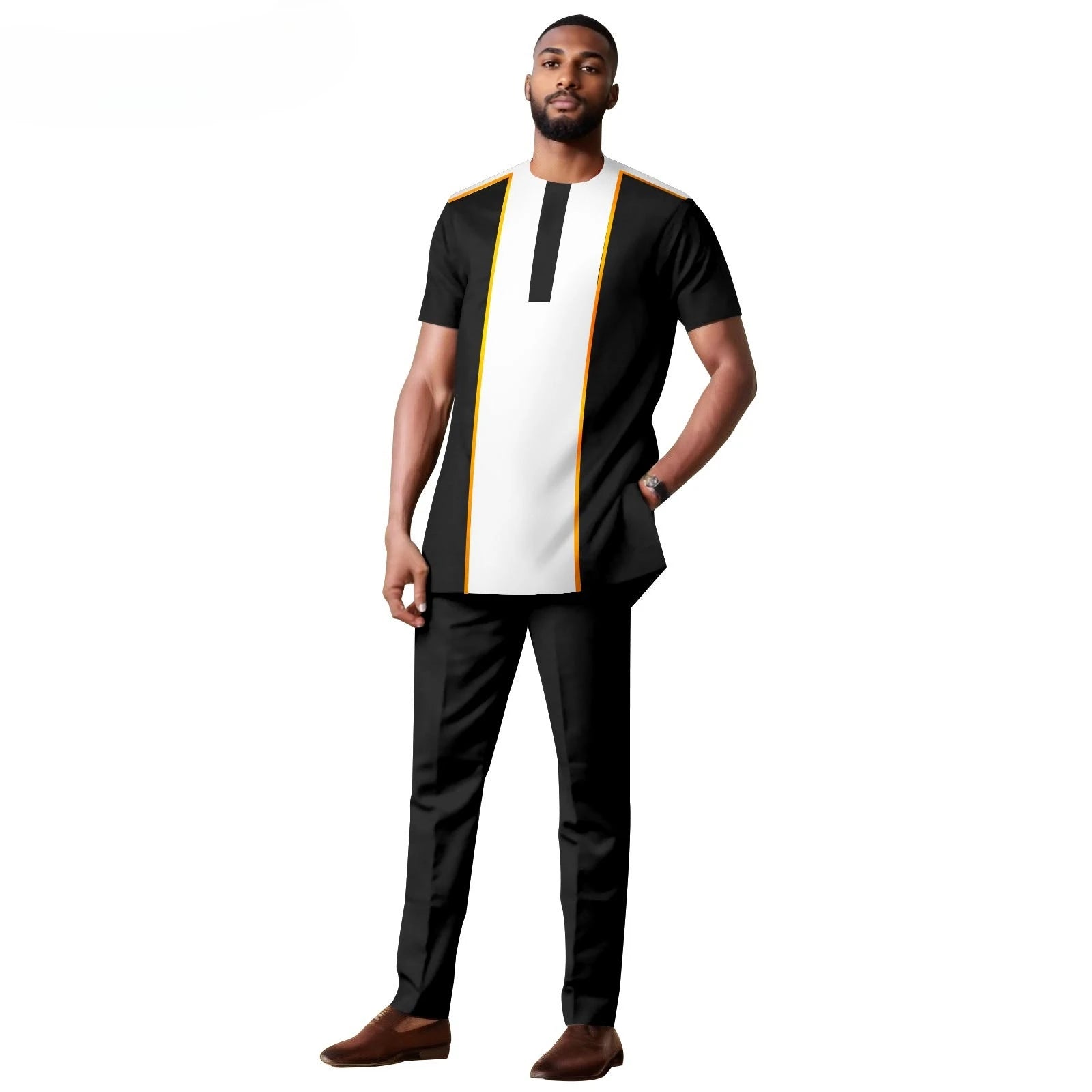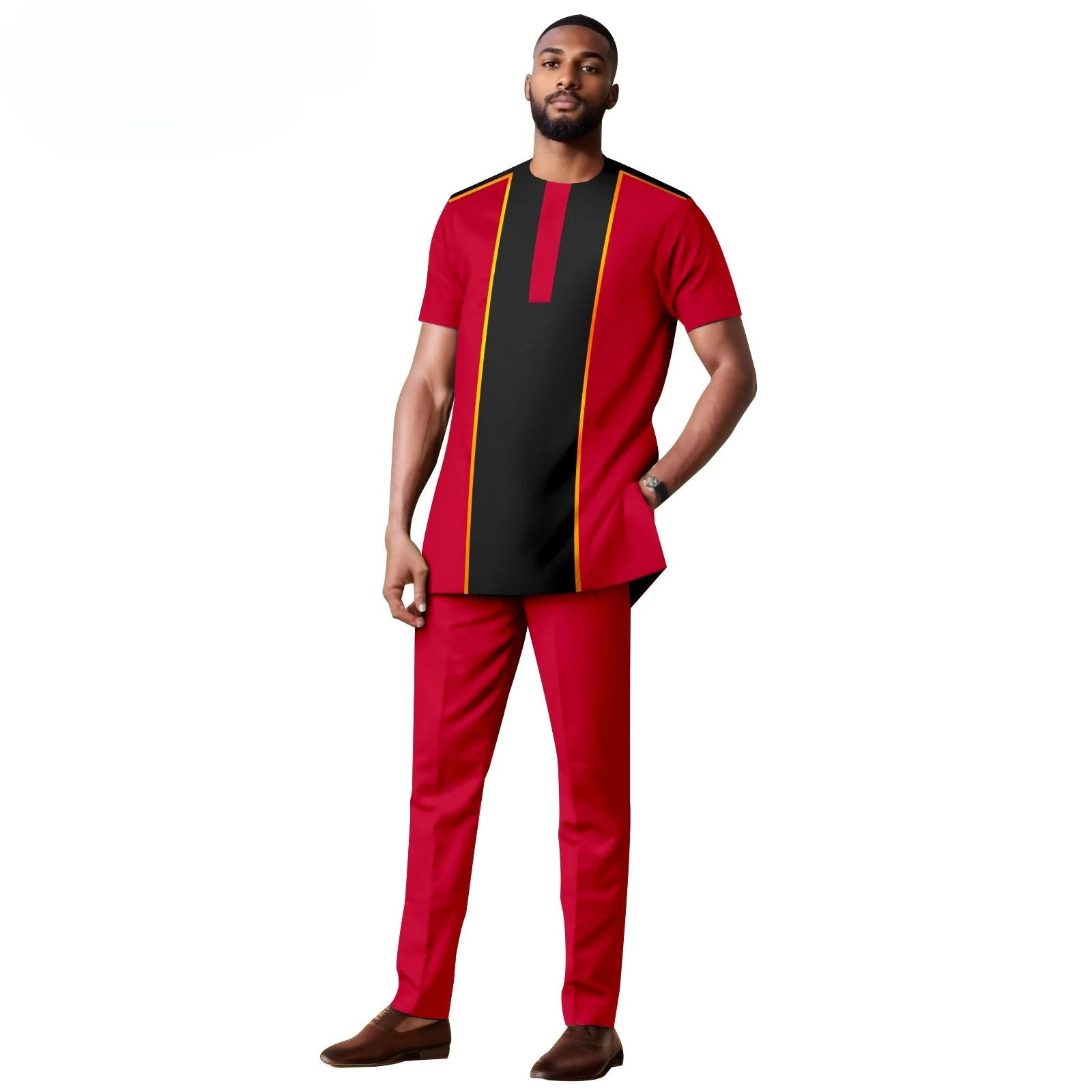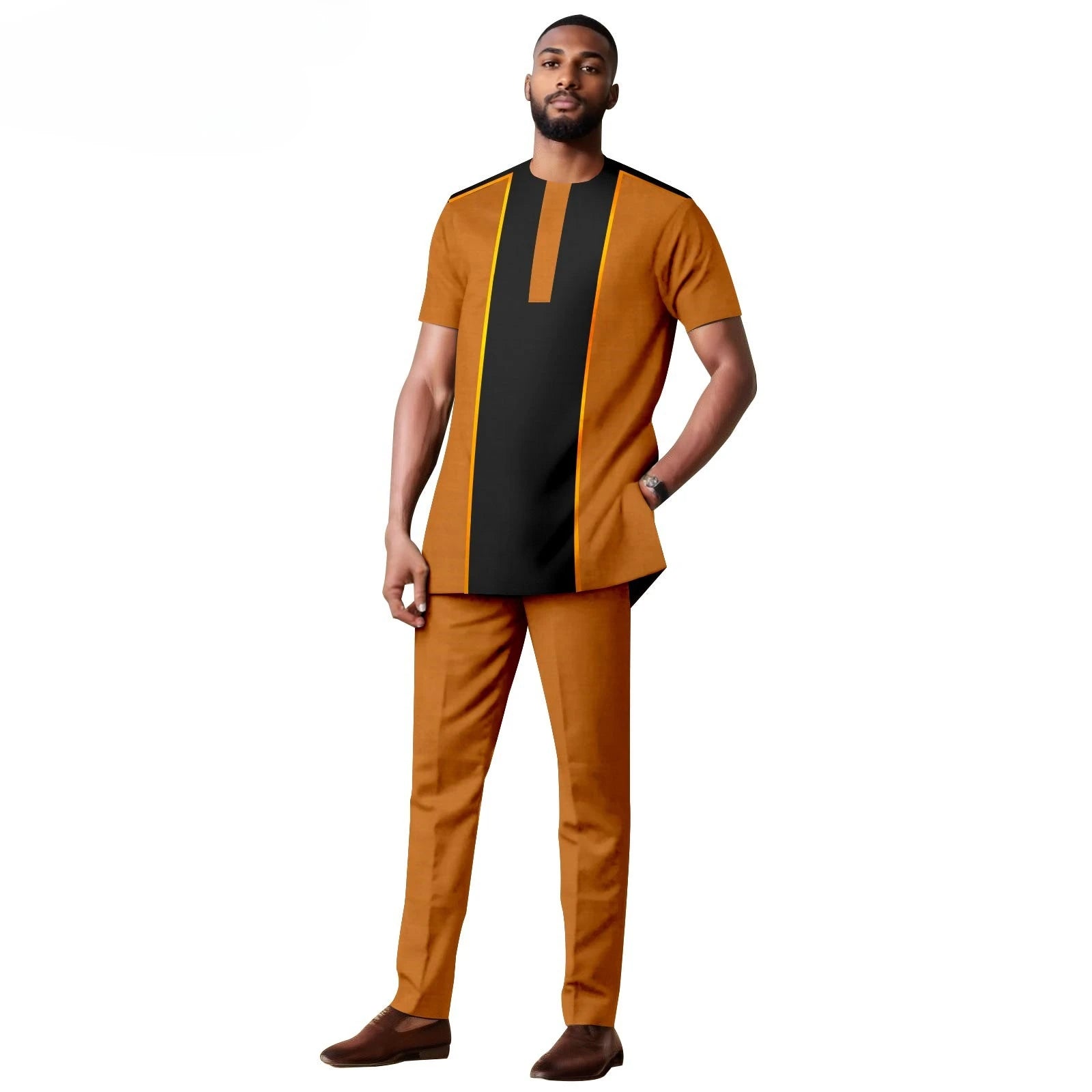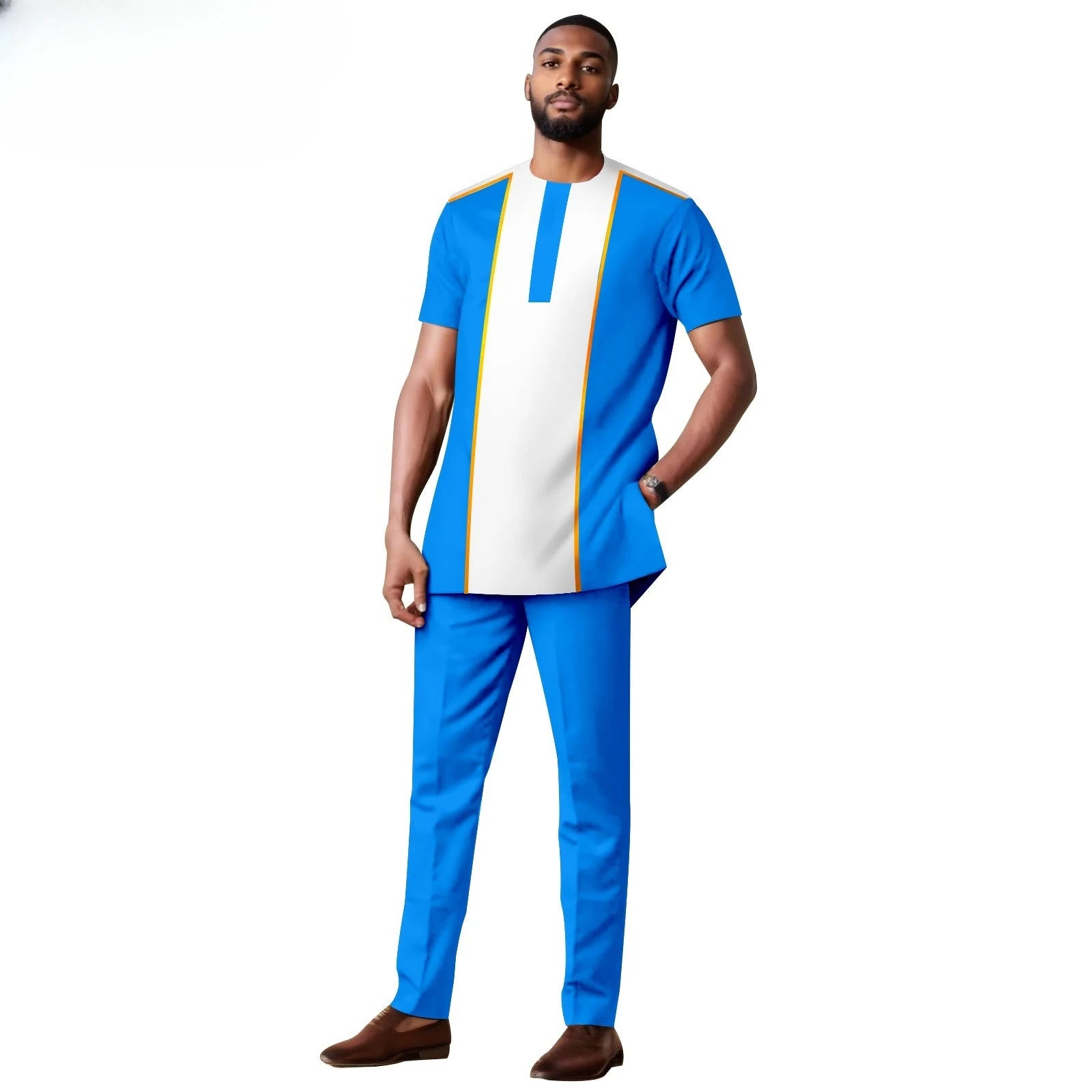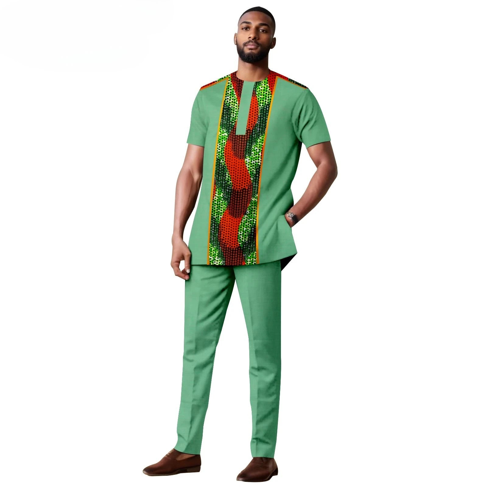 African Clothes for Men Short Sleeve Embroidery Printed Shirts and Pants 2 Piece Set Kaftan Outfits Bazin Riche Suit A2416059