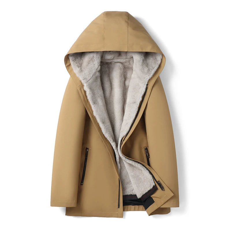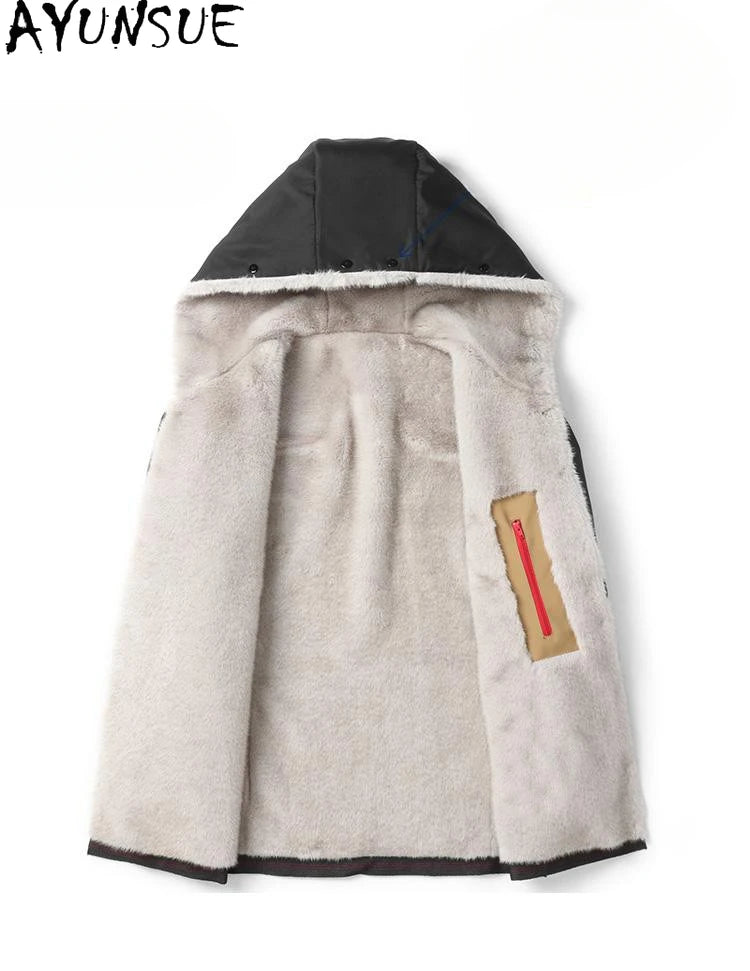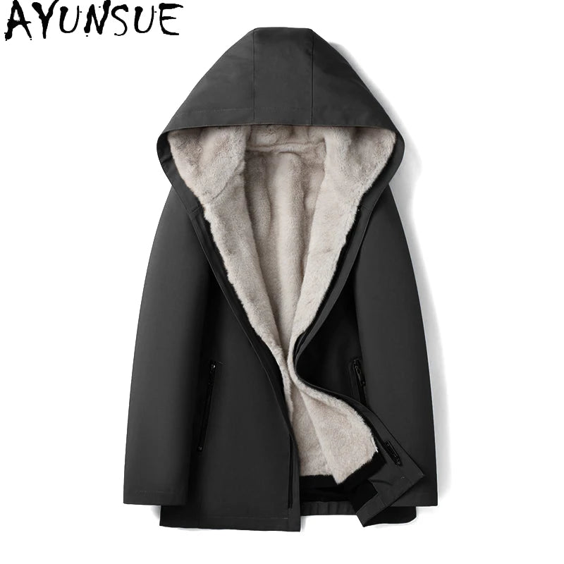 AYUNSUE 2024 Parka Faux Fur Coat Men Fashion Winter Jacket Removable Lining Long Thick Fur Coats Warm Outerwear Parkas Hombre