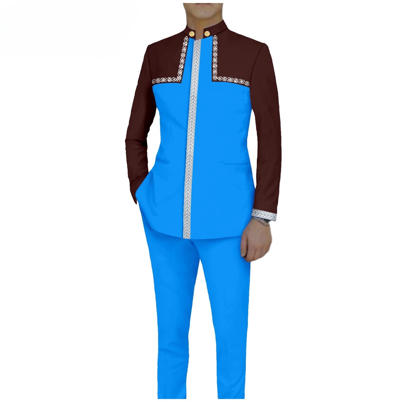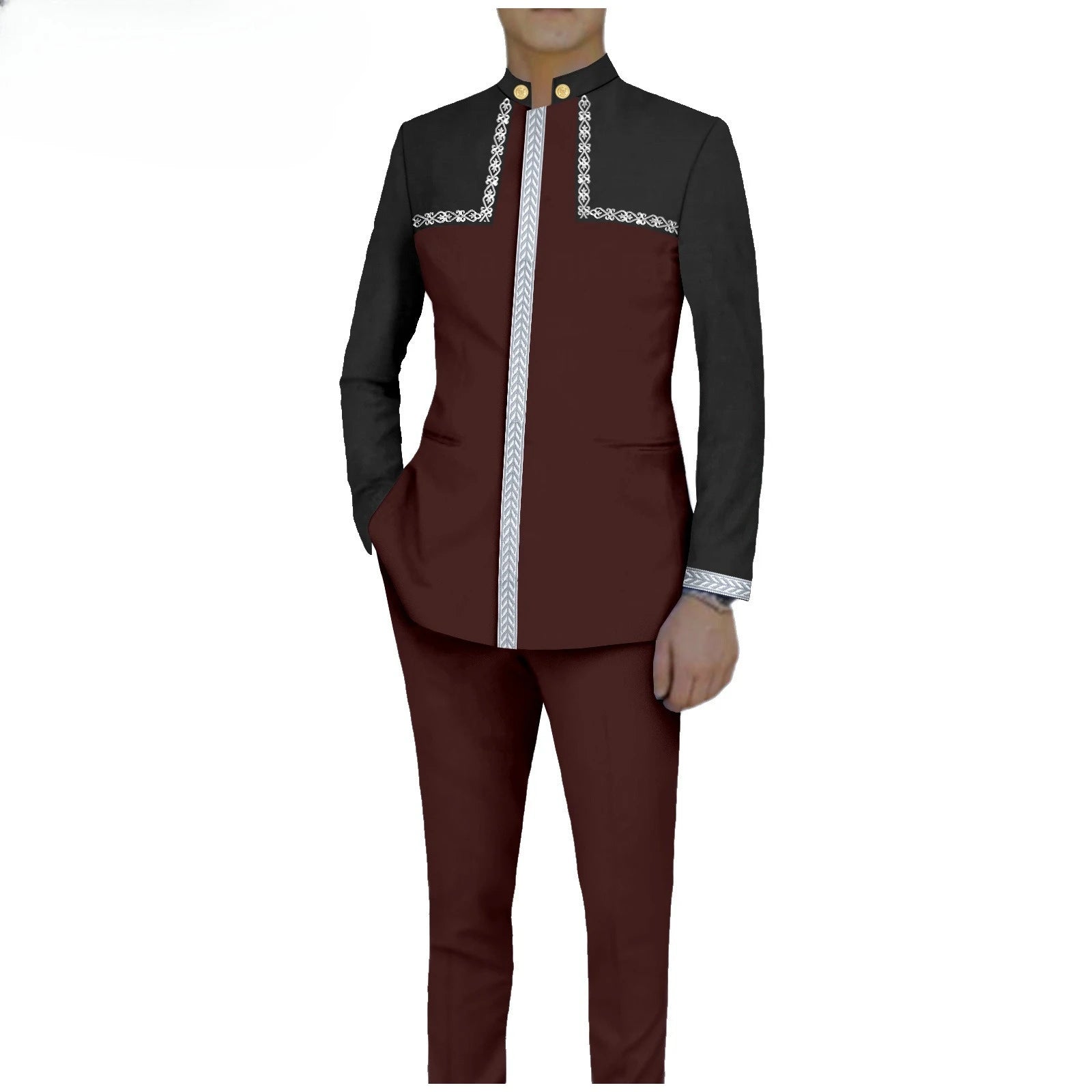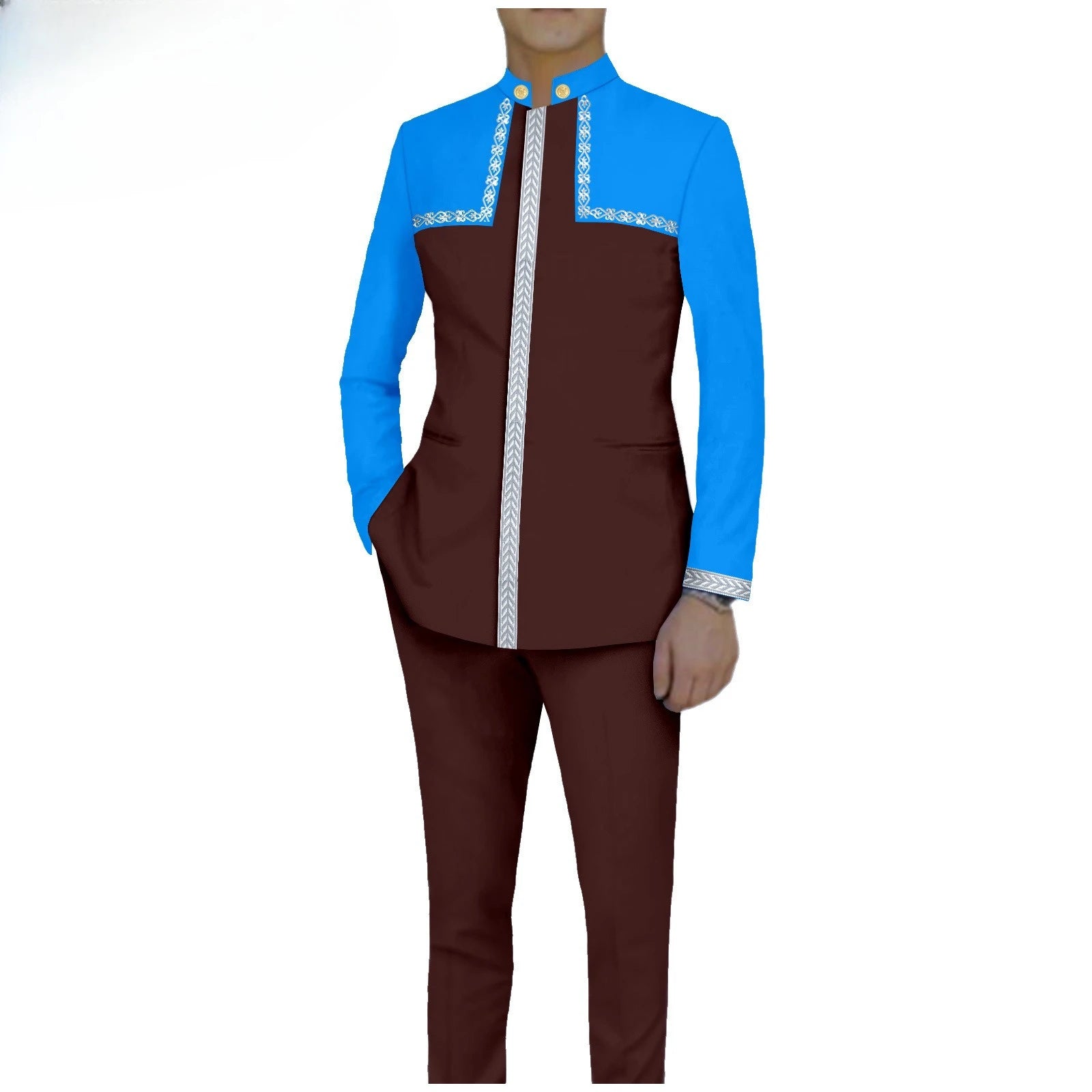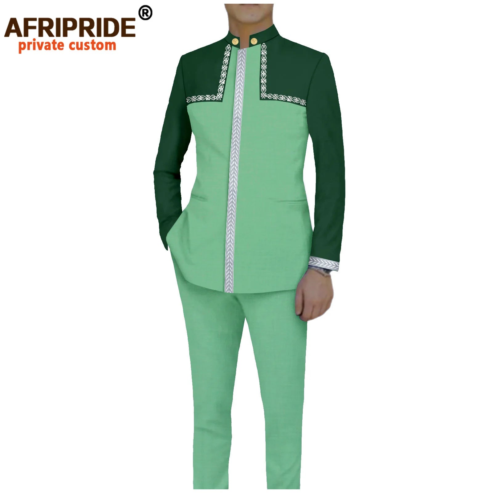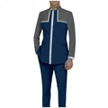 Bazin Riche African Traditional Clothing for Men Embroidery Dashiki Print Zip Blazer Coats with Trousers 2 Piece Suit A2416106
