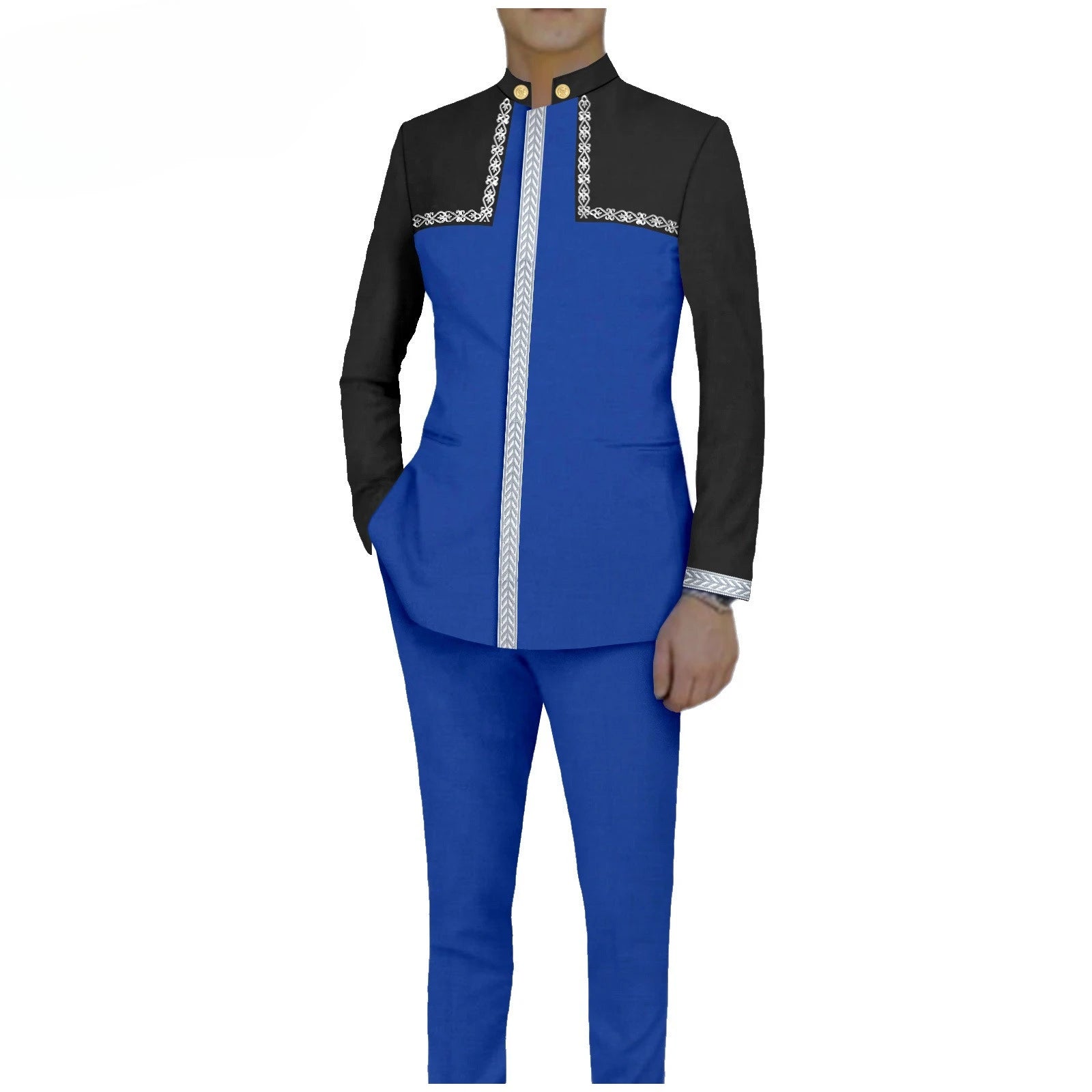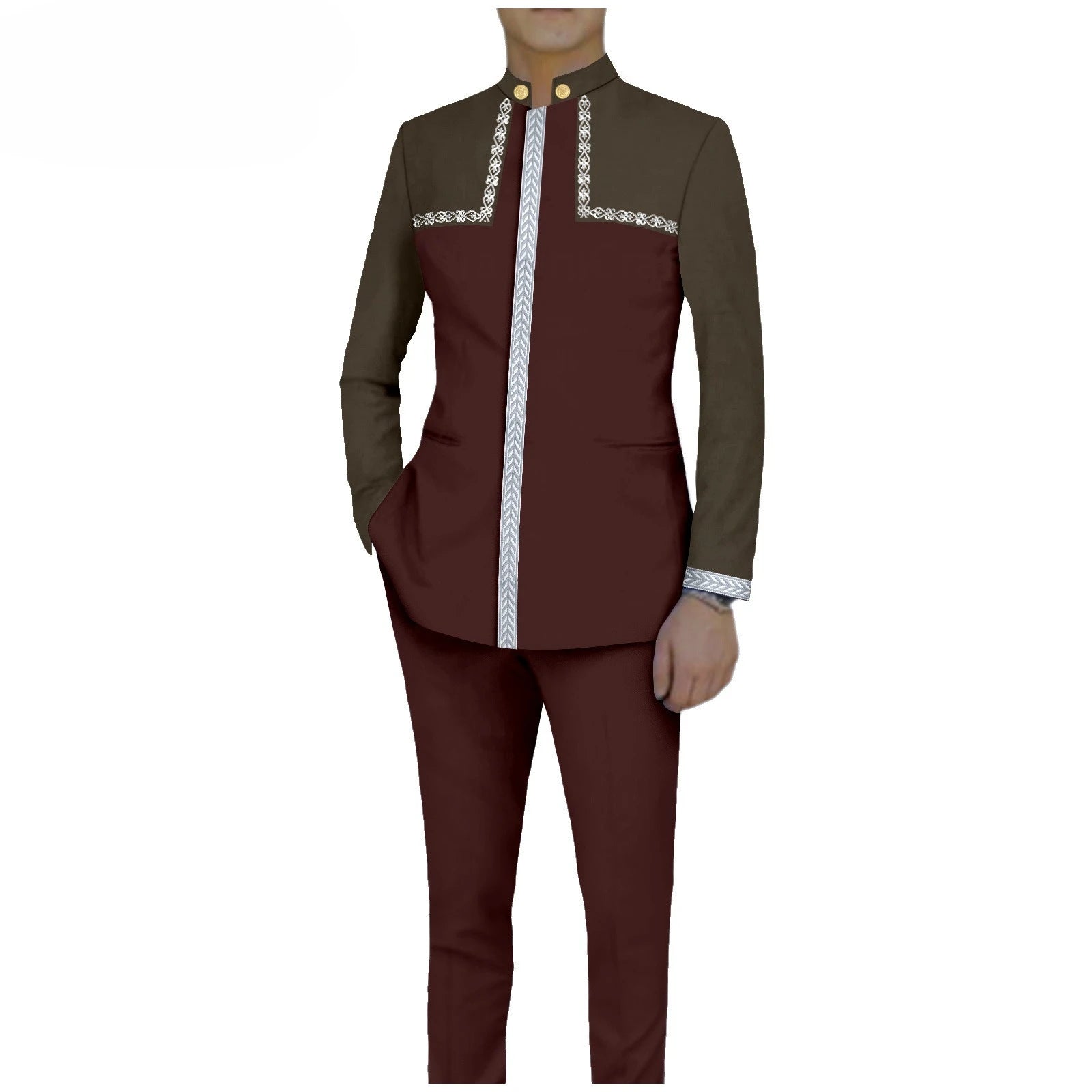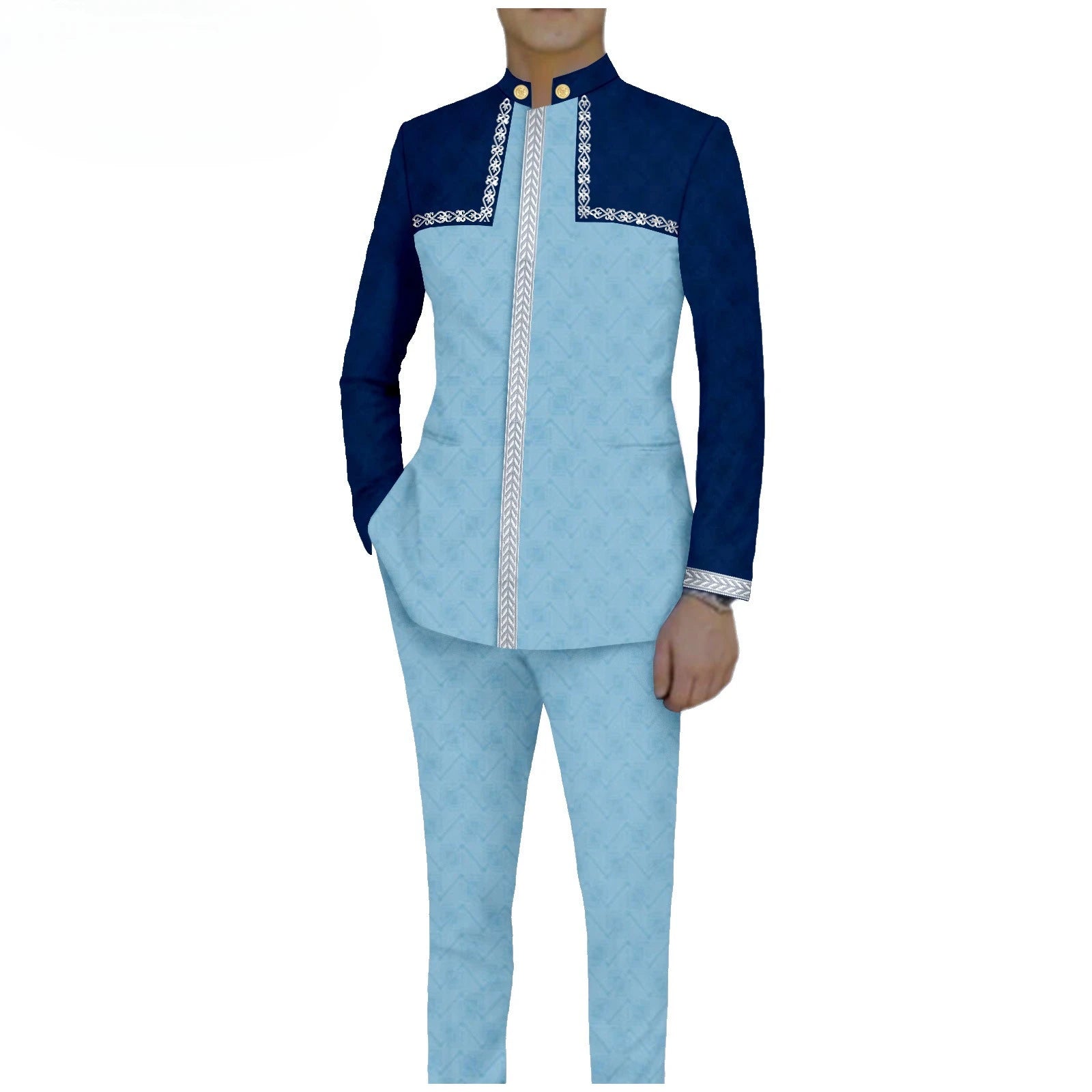 Bazin Riche African Traditional Clothing for Men Embroidery Dashiki Print Zip Blazer Coats with Trousers 2 Piece Suit A2416106