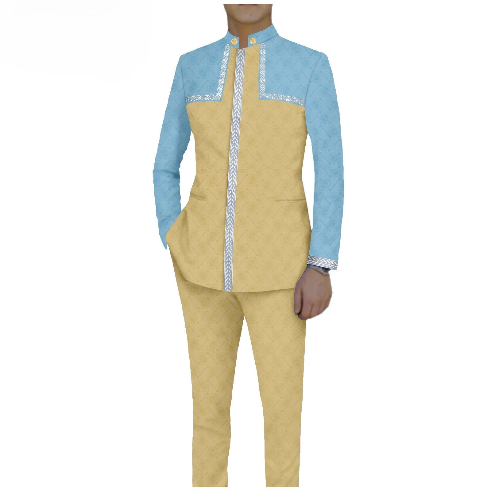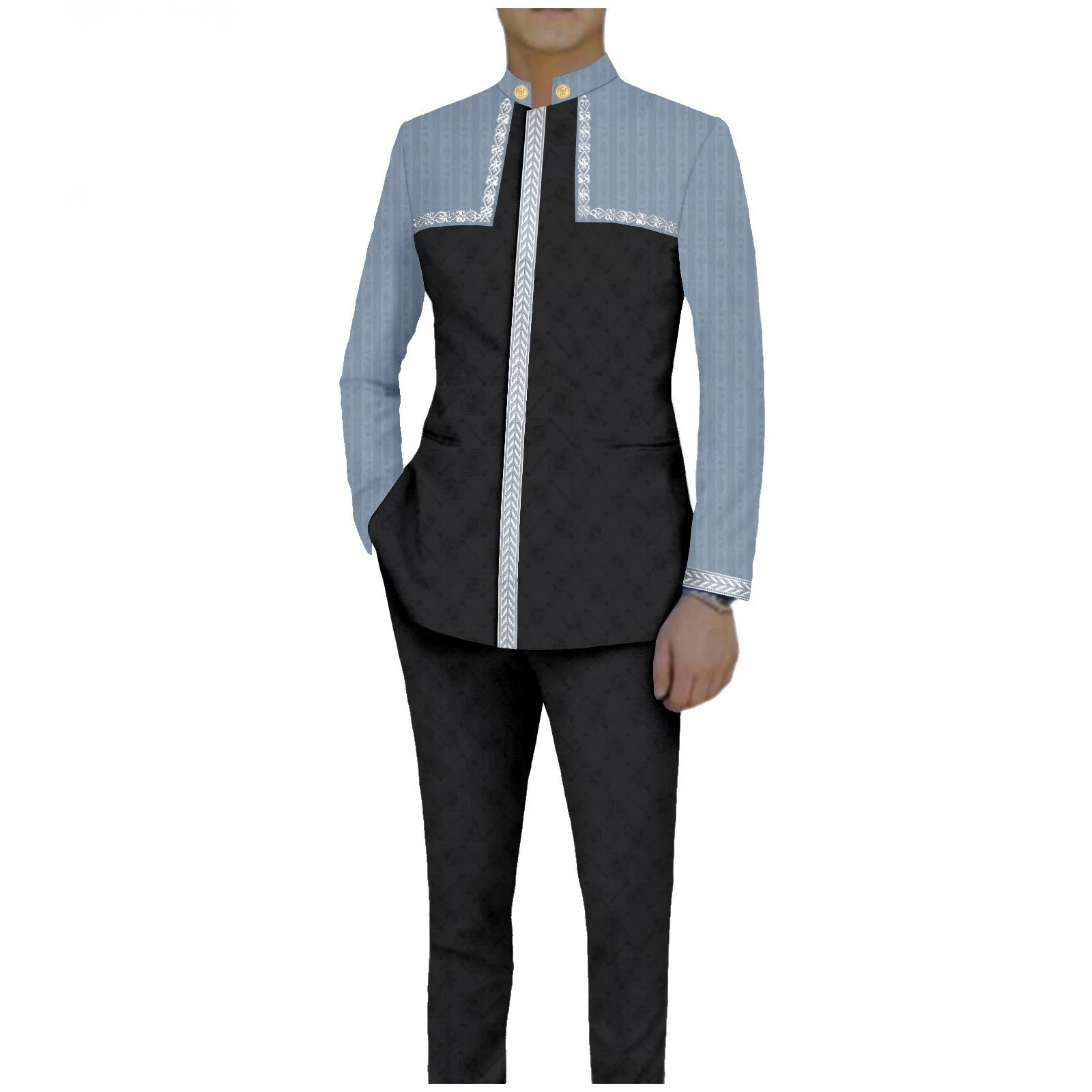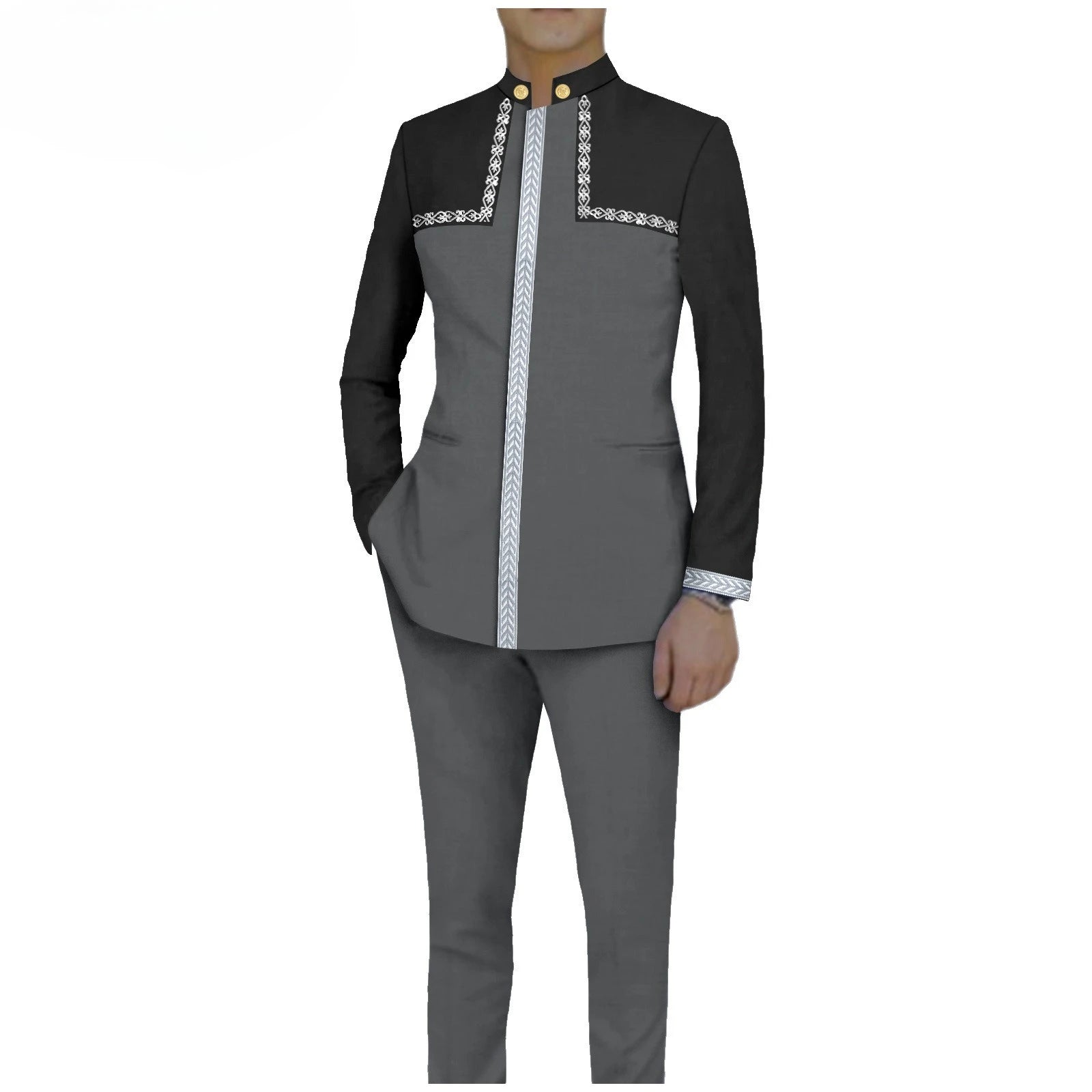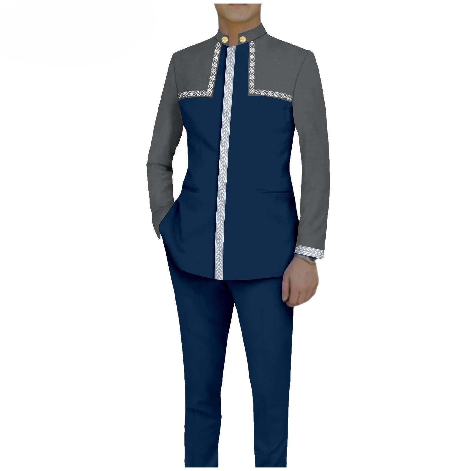 Bazin Riche African Traditional Clothing for Men Embroidery Dashiki Print Zip Blazer Coats with Trousers 2 Piece Suit A2416106