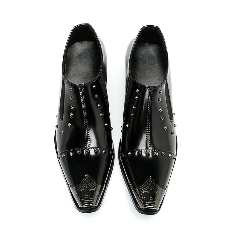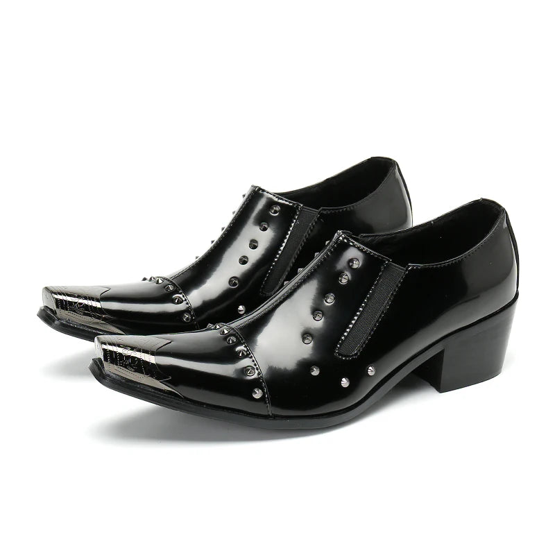 Black Patent Leather Business Dress High Heels Men's Shoes Anti Foot Odor Pointed Iron Toe Fashion Party Wedding Shoes