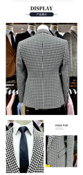 (Blazers + Pants + Vest) New Men Business Social Slim Fit Checkered Suit Male Wedding Ball Party Striped Tuxedo Dress 3Piece Set