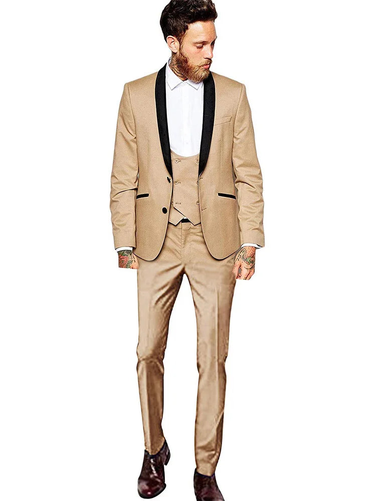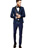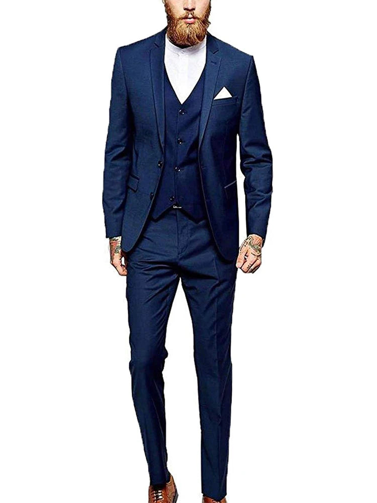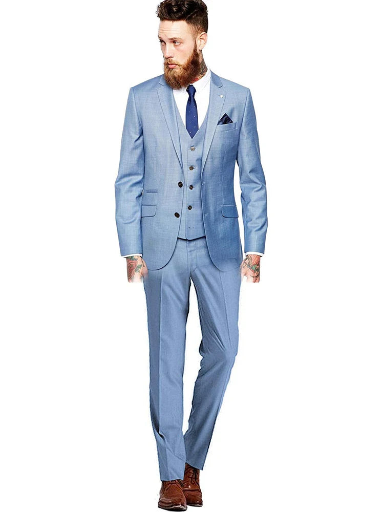 Blue Men's 3 Pieces Fashion Suits Slim Fit Groomsmen Tuxedos Formal Wedding/Business Men Suits Jacket+Vest+Trousers for Party