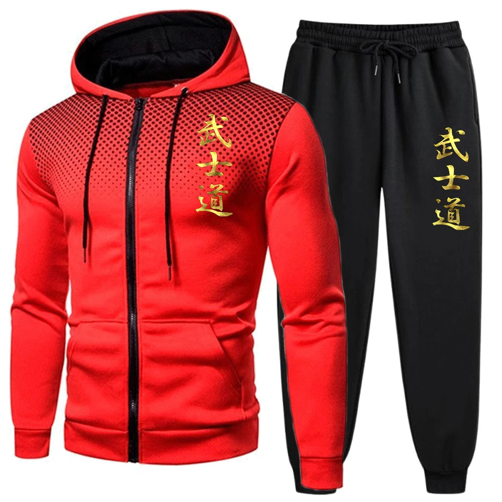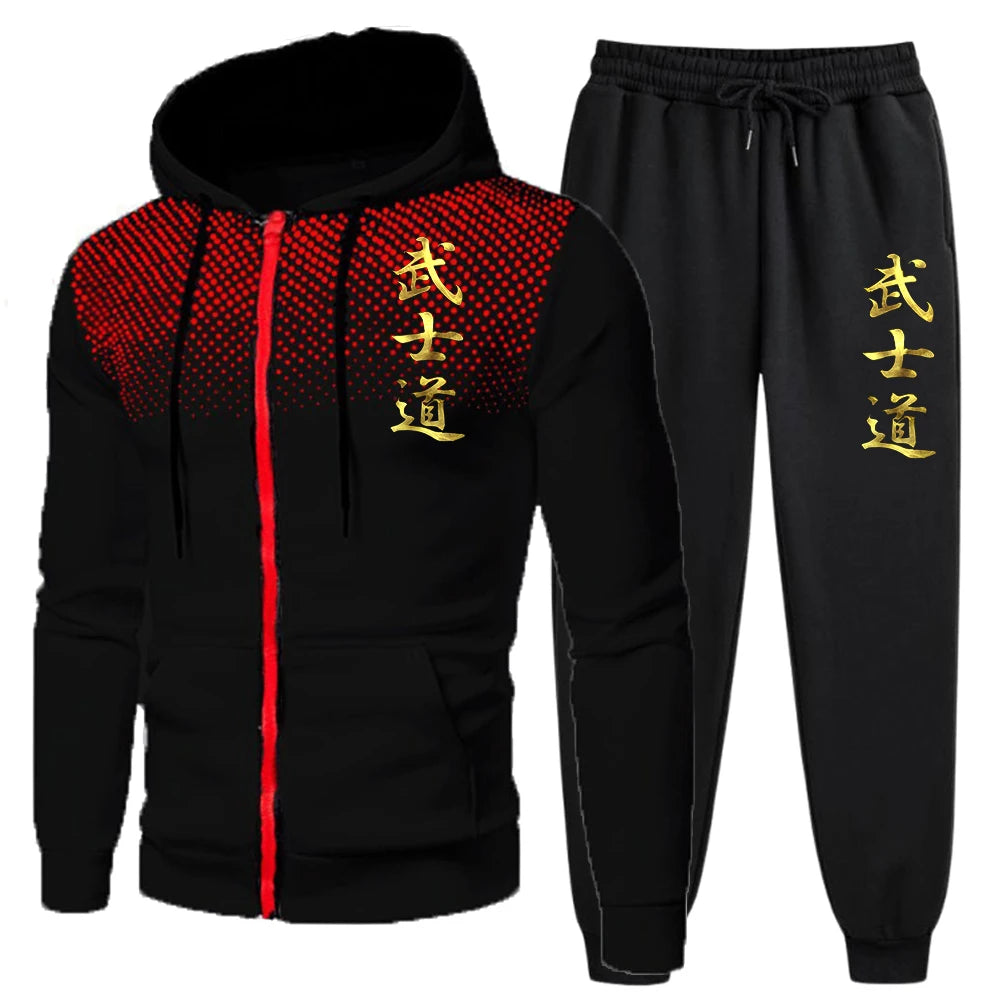 Bushido Printed Men's Zipper Jacket Outfits Fall&winter Casual Sporty Jogger Suit Male Outdoor Exercise Riding Hoodie Tracksuits