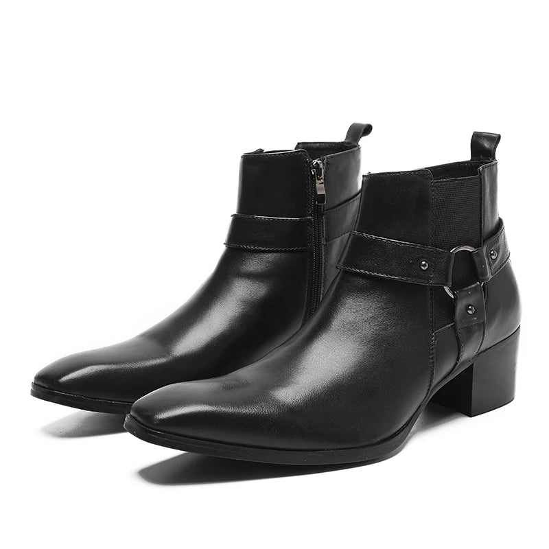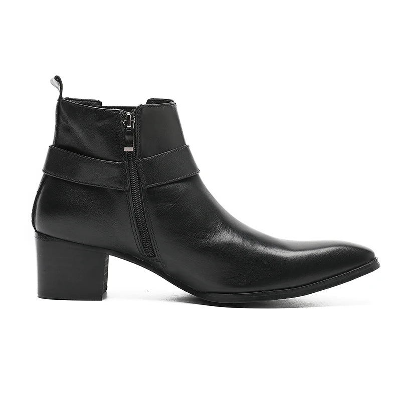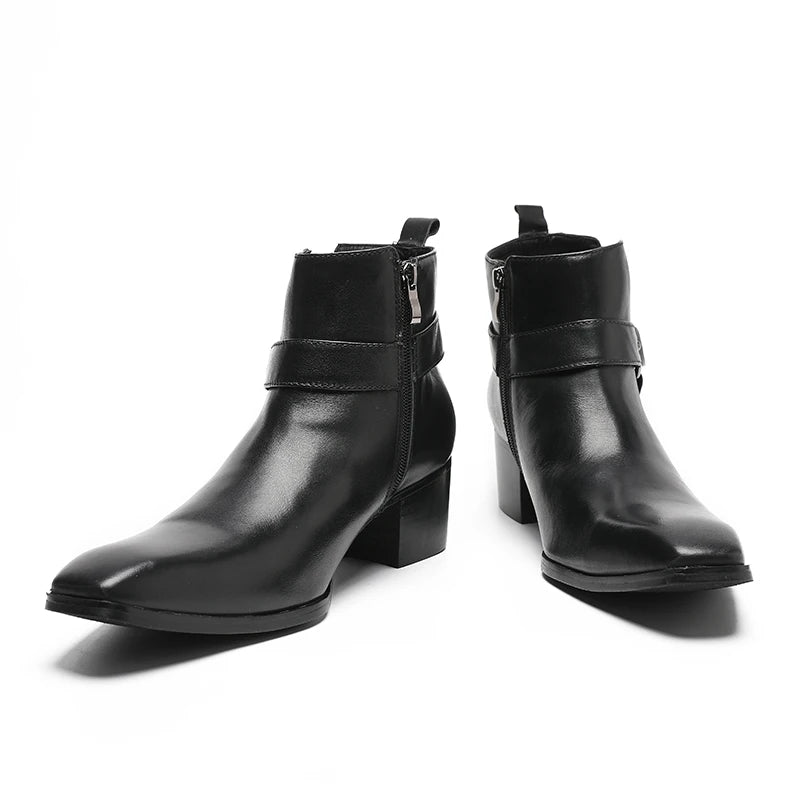 Classic Black Men's Plus Size Denim Boots Leather Pointed Side Zipper Business Formal Shoes Men's Wedding Dress Short Boots